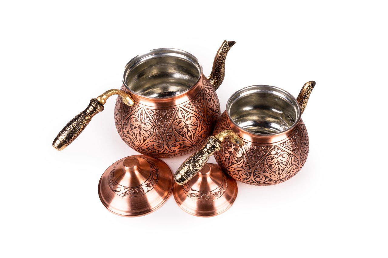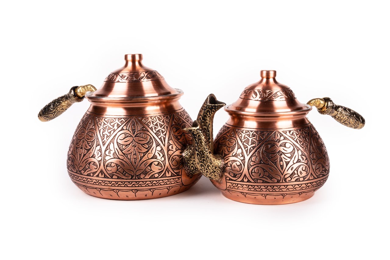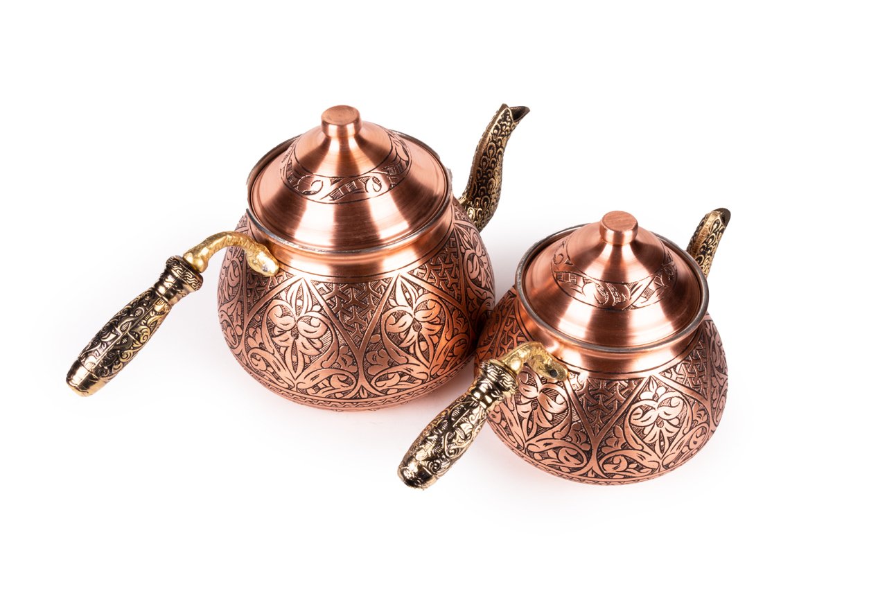 Handygoo Master Work El İşlemesi Bakır Çaydanlık, tam bir ustalık eseri. Baştan aşağıya bakır işleme ustalarımız tarafından özenle işlenmiş ve kalın bakırdan üretilmiştir. Bakır çaydanlık modelimiz 1,8 lt üst demlik ve 2,8 alt demlik hacmine sahiptir. Sahip olduğu bu hacim ile geniş aileler ve işyerleri için son derece idealdir. Demliklerinin iç yüzeyi kalaylanmış olup, iyi bakılması durumunda yıllarca tekrar kalay gerektirmez. Bakırın orjinal renginin eskitme tarz ile birleştirilmesi ile ürettiğimiz ürünümüz tüm bu özelliklerinin yanı sıra bulunduğu ortama dekoratif olarak etkisi son derece büyüktür. Görenlerin dikkatini çekecek ve kendisine hayran bırakacak olan bakır çaydanlık modelimize sitemizden ücretsiz kargo ve güvenli alış veriş fırsatları ile hemen sahip olabilirsiniz. Ürünümüz sitemizdeki tüm diğer bakır ürünler ile uyumlu olup hediye olarak da düşünebileceğiniz yüzlerce ürünümüz ile kombinleyebilirsiniz.