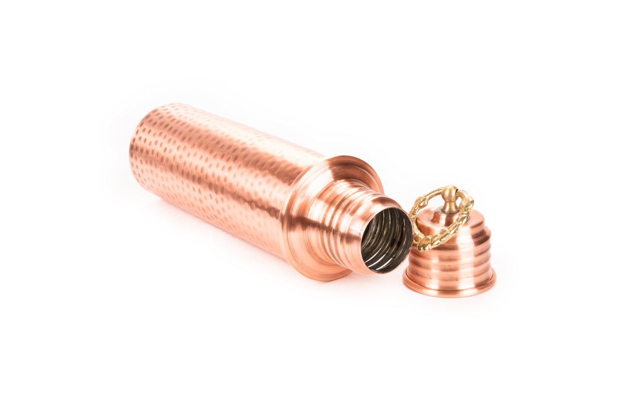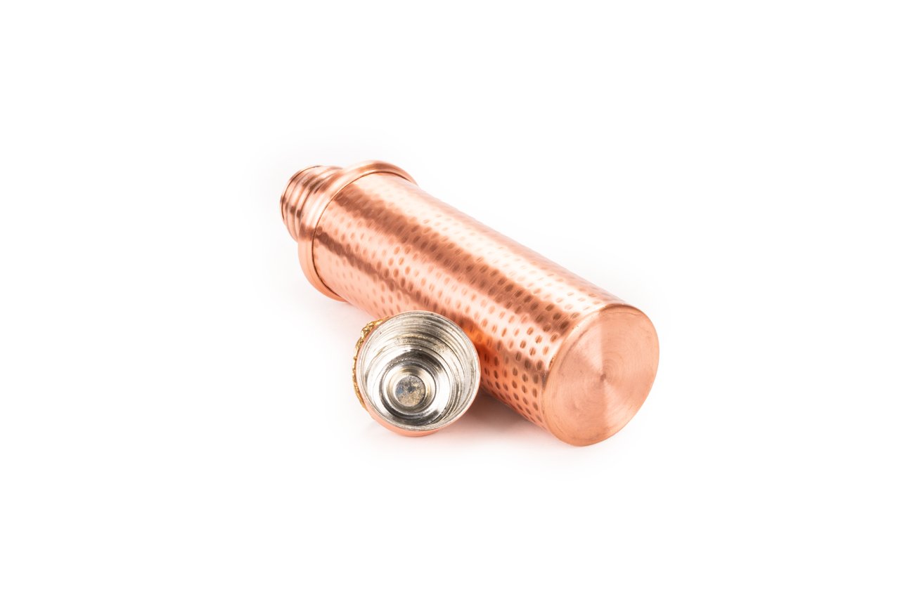 El yapımı ve dövme bakır tekniği ile tasarlanmış olan Handygoo Mat Eskitme Dövme Bakır Su Matarası, evde, ofis de, çantanızda kısacası artık her yerde. Sağlığımız için günde bol miktarda su tüketmek son derece önemli. Şimdi suyunuzu bu el yapımı bakır su matarası ile tüketmek hem sağlıklı hem de çok havalı. Günümüzde pek çok su arıtma metodu bulunmakta olup herkes tarafından kullanılmamaktadır. Ancak pek çok kaynaktan da erişebileceğiniz ve inceleyebileceğiniz üzere, bakırın su üzerinde pek çok olumlu etkisinden bahsedilmektedir. Bunlar için de en önemlileri su içerisindeki bakteri, küf ve mantar gibi yaşamların bakır kullanımında azalıyor olması ve su içmeyi daha sağlıklı hale getiriyor olmasıdır. El yapımı bakır su matarası boyu kapak kısmı ile 28,5 cm olup, kapaksız 24 cm dir. 750 ml su almaktadır. Çapı 6,5 cm dir. Ağız çapı ise 3,5 cm dir. İç kısmı güvenle kullanmanız için tamamen kalaylanmıştır. El yapımı ürün, pet şişelerin yada plastik ürünler ile kıyaslanamayacak şekilde şık ve ilgi çekici. Kendinizden söz ettirmek isteyenler için tasarlandı ve üretildi.
