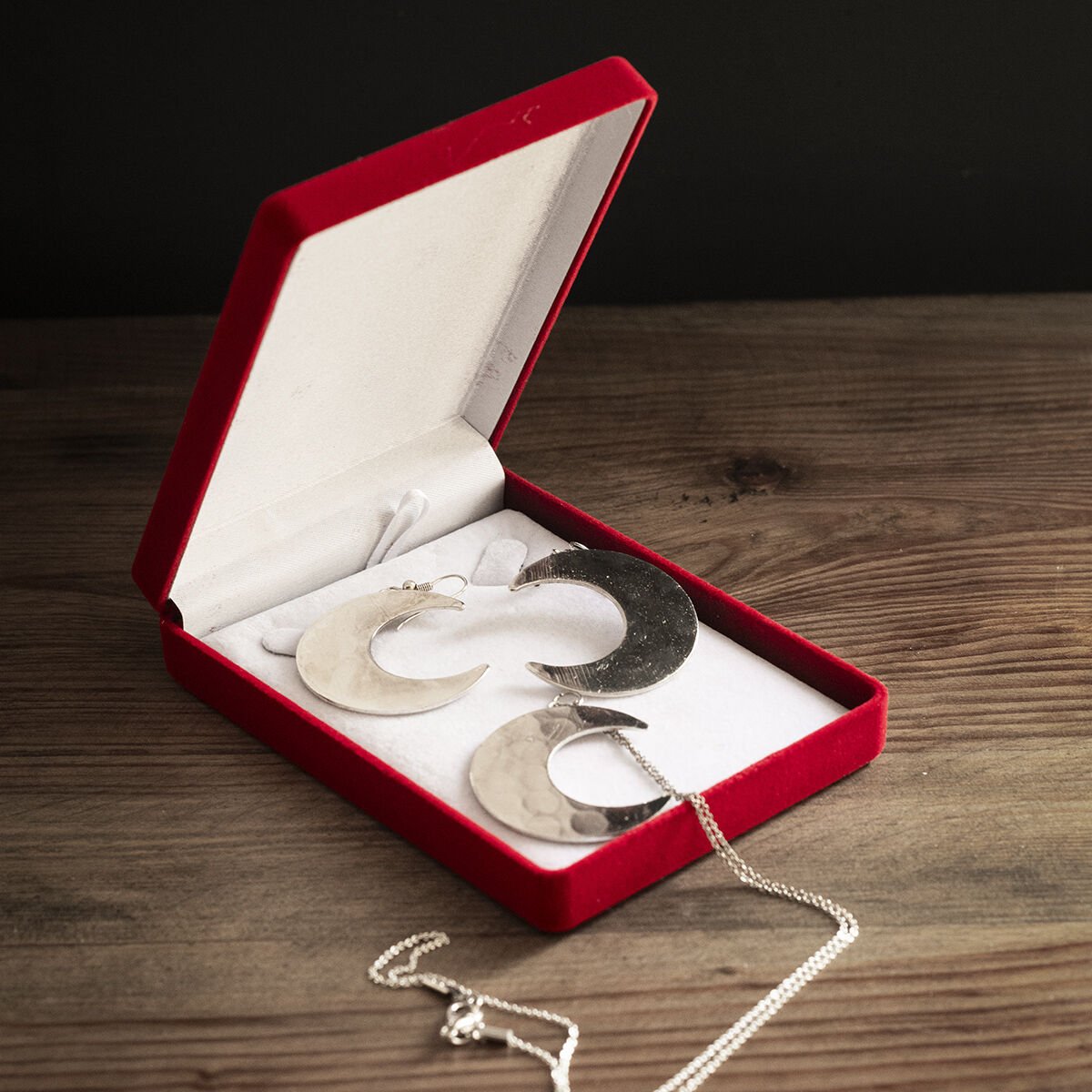 Handygoo Moon Style Bakır Kolye ve Bakır Küpe, bakır aksesuar tercihleriniz için ürettiğimiz modellerimizdir. Bakır Kolye ve Bakır Küpe modelimiz sahip olduğu hilal şekli ile çok zariftir. Gümüş rengindedir. Üretimi tarafımıza aittir ve tamamen el yapımıdır. Kolye modelimiz, 5 cm en ve boy ile 0,2 cm kalınlığa sahiptir. 10 gr ağırlığındadır. Bakır Kolye modelimiz de bakır toka modelimiz ile aynı boyutta ve 10 gr ağırlığındadır. Her iki modelimiz de %100 orijinal bakır ve gümüş kaplamadır. Klasik küpe modellerinden bu özelliği ile ayrılmaktadır. Bakır insan vücudu için sadece dışarıdan alınabilen çok önemli bir madendir. Modelimiz, ürün görsellerinde yer aldığı üzere kırmızı şık kutusu ile birlikte satılmaktadır. Kutu boyu 16 cm, eni 12 cm ve yüksekliği 3 cm dir. Bu sayede hem kendinize hem de sevdiklerinize hediye olarak da düşünebilirsiniz. Ücretsiz kargo avantajından da faydalanabilirsiniz.