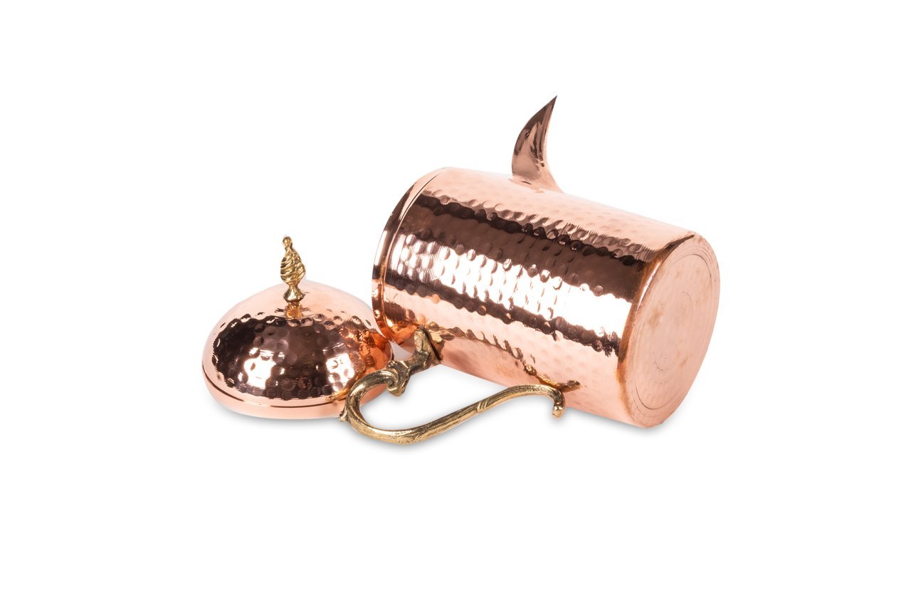 Handygoo New Line Kırmızı Dövme Bakır Sürahi, bakır sürahi modelleri içerisinde en yenisi. Farklı tasarımı, ergonomik yapısı ile hem çok kullanışlı hem de çok dekoratif. Kendi imalatımız olan bakır sürahi, üzerindeki tamamı elde işlenmiş nakışları ve eskitme formu ile göz dolduruyor. 1,4 lt hacime sahip olan ürün, kapaksız 16 cm, kapaklı 24,5 cm yüksekliğe sahip iken çapı ise 10 cm dir. Kalın bakırdan üretilmiş olan ürünümüz, soğuk su, ayran, meyve suyu, soğuk çay ve benzeri tüm soğuk sıvılar için elinizin altında olmasını isteyeceğiniz ayrıca hediye olarak da düşünebileceğiniz yepyeni bir tasarım. Güvenle kullanımınız için iç yüzeyi de tamamen kalaylanmış olan ürünümüze ücretsiz kargo fırsatı ile sahip olabilirsiniz.