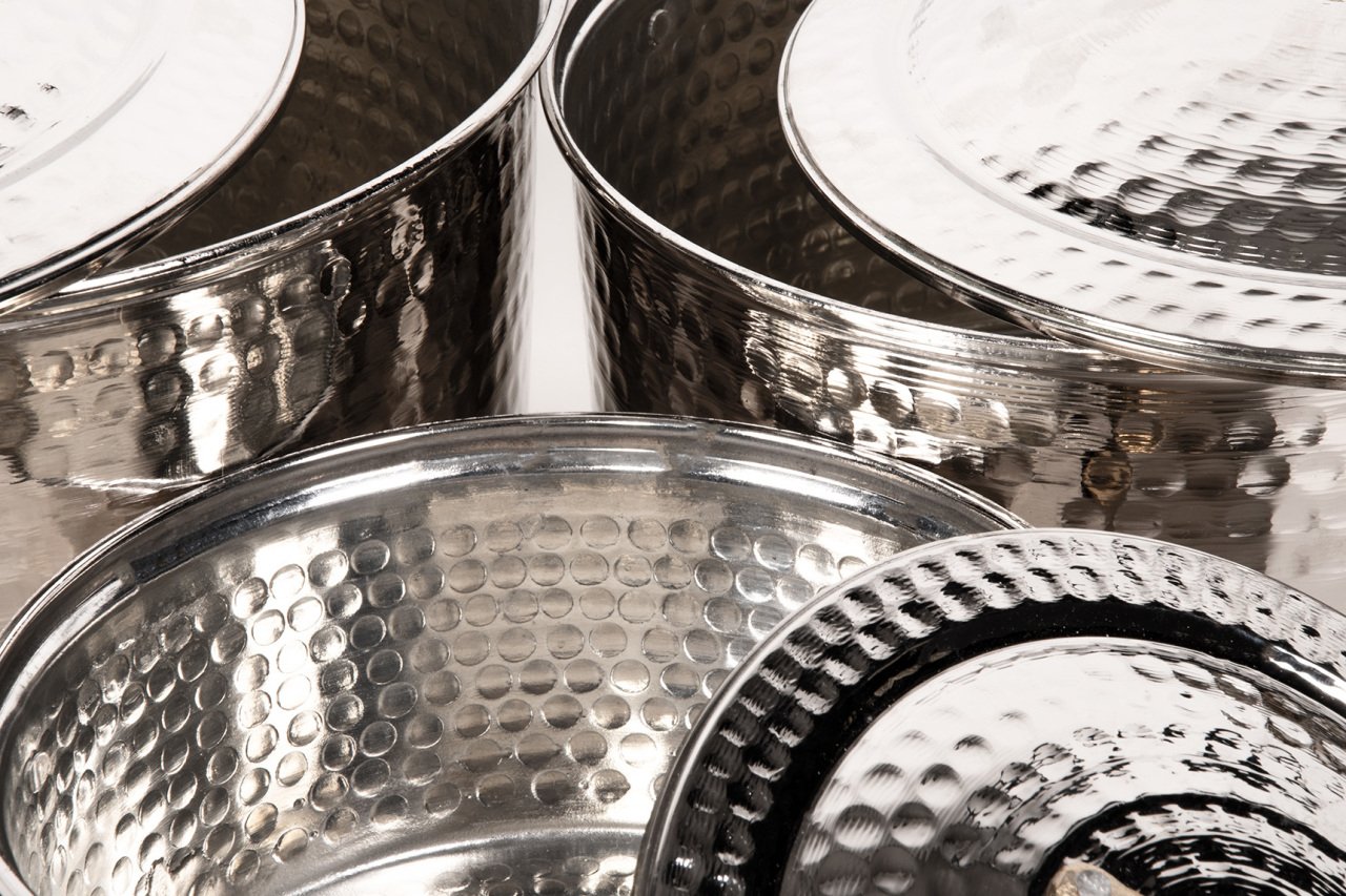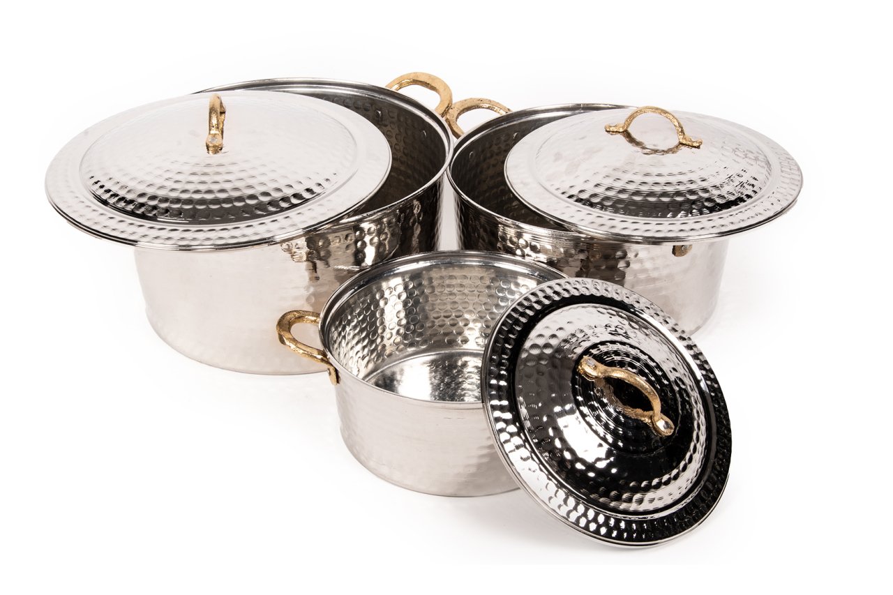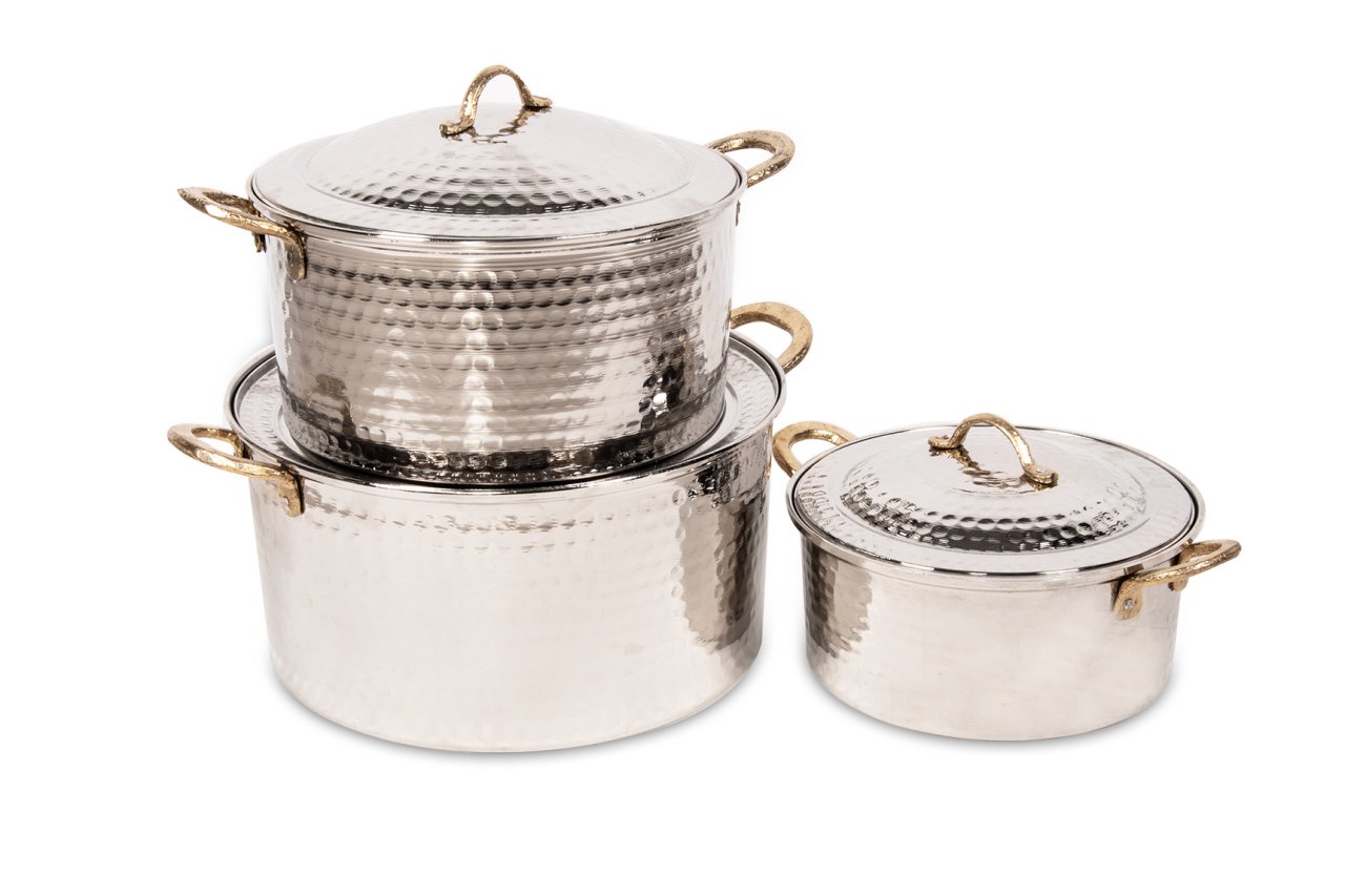 Handygoo Nikelajlı Derin Dövme Bakır Tencere Seti, birbirinden farklı 3 boy, modern ancak geleneksel tarzda ürettiğimiz dövme bakır tencere modellerimizi içermektedir. Set içerisindeki en ufak boy dövme bakır tenceremiz 21,5 cm çapında ve 10 cm derinliğindedir. 2 LT hacmi bulunmaktadır. Orta boy tenceremiz 25,5 cm çapında ve 13 cm derinliğinde iken 5 LT hacmi bulunmaktadır. En büyük boy dövme bakır tencere modelimiz 29,5 cm çapında ve 15 cm derinliğindedir. 8 LT hacmi bulunmaktadır. Tüm yemekleriniz için birbirinden farklı boy seçeneği sunan ürün setimiz, mutfağınızdaki dekorasyonu bütünlerken, elinizin altında sürekli bulundurmak istediğiniz ürünümüz olacaktır. Günlük kullanıma son derece uygun olan bakır tencere modellerimizin iç yüzeyi güvenle kullanımınız için kalaylanmıştır. Tüm tencerelerimiz tamamen el yapımı olup, G.Antep'li bakır ustalarımız tarafından elde dövülerek üretilmiştir. Dolayısı ile ürünlerimiz tamamen size özeldir. Ürünlerimiz kalın bakırdan üretilmektedir. Parlak görünümü için nikelajlanmıştır. Ürünümüz kararma yapmamaktadır. Ürün setimize, tüm kredi kartlarına peşin yada taksit imkanları ile güvenle sahip olabilirsiniz.