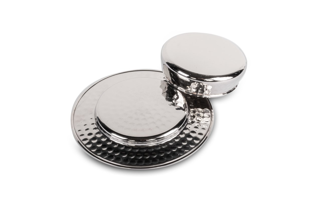 Handygoo Nikelajlı Dövme Bakır Çerezlik, çerez başta olmak üzere tüm küçük çaplı servisleriniz için ürettiğimiz yeni modelimizdir. Elde çekiçleme ile tamamen el yapımı olarak ürettiğimiz dövme bakır çerezliğimiz tabak ve çerezlik kısmı olarak iki bölümden oluşmaktadır. Tabak kısmı çapı 16,5 cm çapındadır. Çerezlik kısmının çapı 9,5 cm iken yüksekliği 3 cm'dir. Ürünün toplam yüksekliği 4,5 cm'dir. Dövme bakır çerezlik modelimiz kalın bakırdan üretilmiş olup sunum ve servislerinizde son derece şık görüntüsü ile fark yaratacaktır. Ürünümüz diğer tüm bakır ürünlerimizle uyumludur.