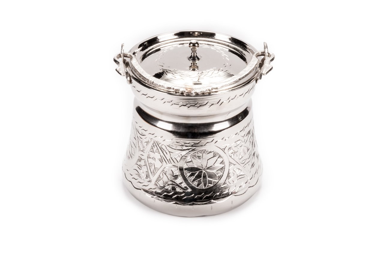 Handygoo Nikelajlı El İşlemesi Bakır Bakraç, Gaziantep’li ustaların elleri ile işlenmiştir. Yoğurt mayalama, sıvı yada katı saklama ve taşıma amaçlı olarak tasarlanmış olup, sadece dekoratif amaçlı olarak da kullanabileceğiniz bir ürün olarak ön plana çıkmaktadır. Yükseklik ve çapı 15 cm olan bakır ürünün 2 lt hacmi bulunmakta, tamemen el işçiliği ile eskitme tekniği kullanılarak üretilmiştir. İç kısmı kalay ile kaplanmış olup, dış kısımlar parlaklığını koruyan malzeme ile kaplanmıştır. Bu sebep ile kararma yapmamaktadır.En altından üste doğru geleneksel işlemelere sahip olup kapak kısmı da işlemelidir. Hem kapak üstünde hemde yanlarından pirinç kulplara sahip olan bakır bakraç, kullanım kolaylığı sağlamaktadır. Tamamen geleneksel ve kültürel temalar ile donatılmış olan ürün, mutfak, yemek odası ve oturma odası için göz alıcı özelliklere sahiptir. Misafirlerinizi etkileyebilecek tarz ve pratiklik dengesine sahip olan bakr kova yada bakraç ürününüz ile herhangi bir iç yada dış mekan için büyüleyici bir aksesuar yaratabilirsiniz. Sevdiklerinize ve dostlarınıza hediye de edebileceğiniz bakır kova ve bakraç, kendilerini son derece şanslı hissetmelerine sebep olacaktır. Ürünümüzün 3 ve 4 lt hacimli seçenekleri de mevcuttur.