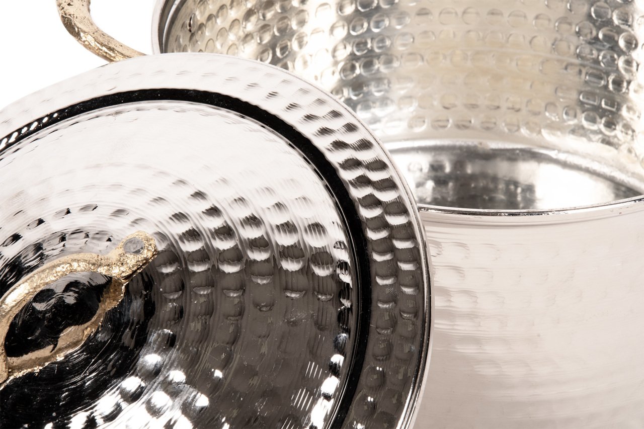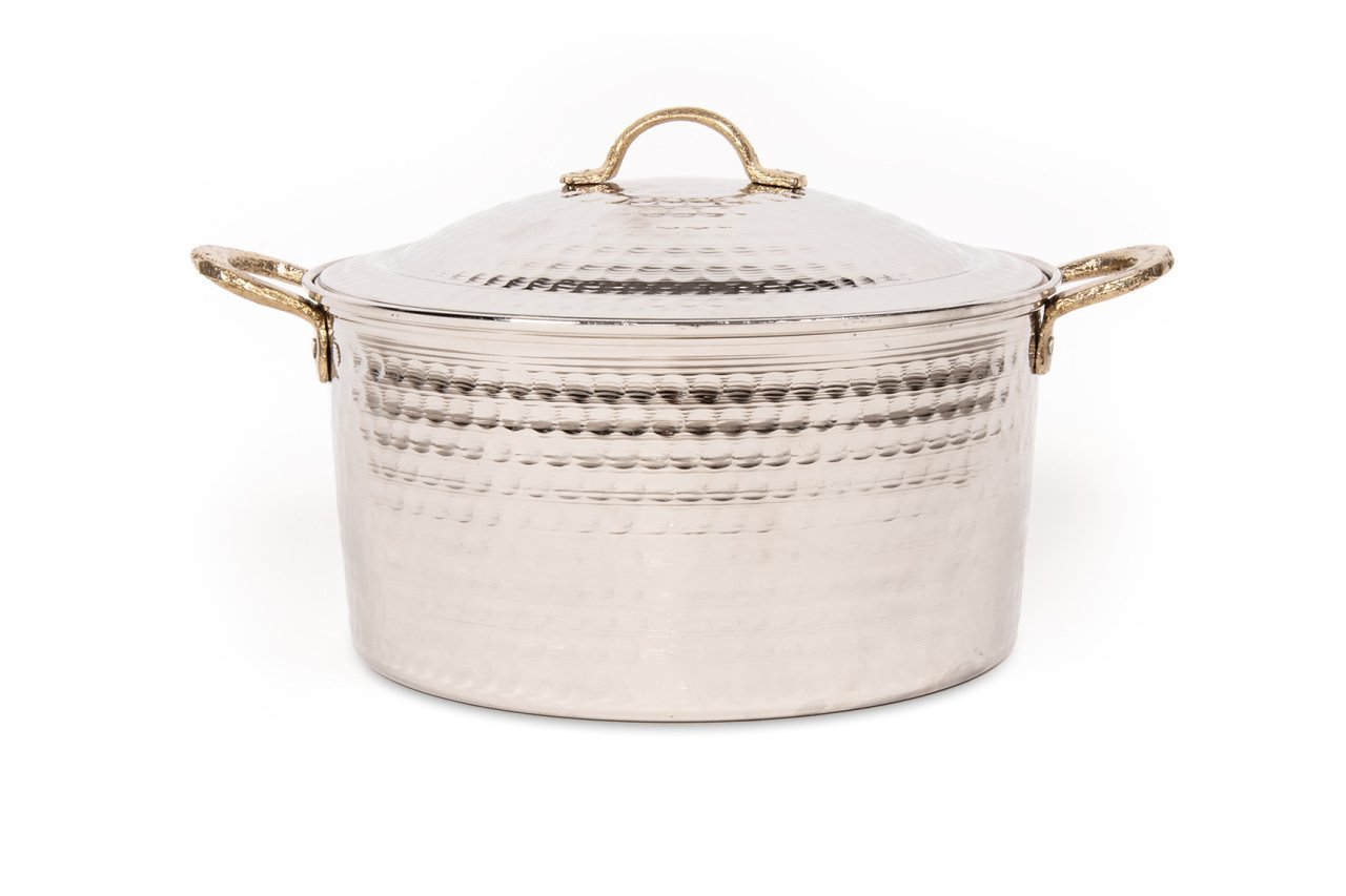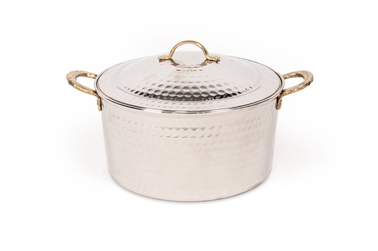 Handygoo Nikelajlı Orta Boy Derin Dövme Bakır Tencere, mutfağınızda pek çok ihtiyacınızı görecek büyüklüktedir. Son derece modern fakat bir o kadar da geleneksel tasarımı ile göz dolduruyor. 25,5 cm çap ve 13 cm derinlik ve 5 LT hacime sahiptir. Yemeklerinizi bakır tencere lezzetinde pişirmek için son derece kullanışlıdır. Kapağındaki özel tasarımımız ile birlikte, kapak kenarları tencere dışına damlatma yapmamaktadır. Günlük kullanımda güvenle kullanımınız için iç kısmı tamamen kalaylanmıştır. Ürün bakır kaplama değildir. Gerçek bakırdan elde şekil verilerek ve yine elde çekiç ile dövülerek üretilmiştir. Kalın bakırdan üretilen dövme bakır tencere kendi imalatımızdır. Mutfağınızda severek kullanabileceğiniz bakır pilav tenceresi, mutfağınızdaki diğer çelik, granit vb tencerelerinizi de dekoratif olarak tamamlayacaktır. Parlak görünümü için nikelajlanmıştır. Ürünümüz kararma yapmamaktadır.