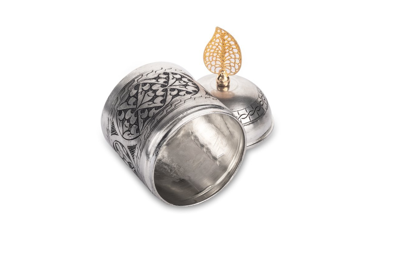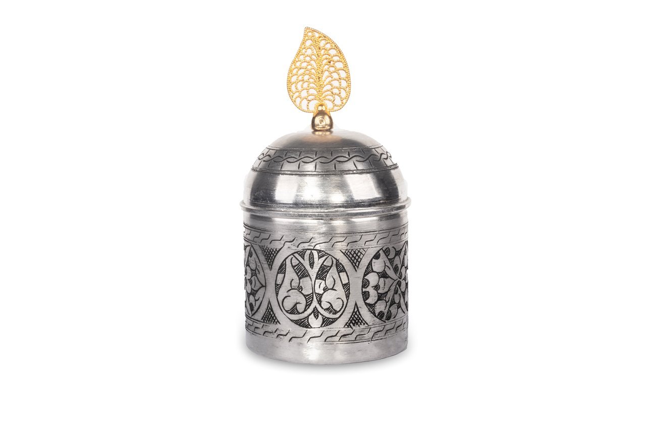 Handygoo Nikita Bakır Baharatlık, baharat ve benzeri saklama ihtiyaçlarınıza tüm güzelliği, ergonomik yapısı ile yanıt veriyor. Kalın bakırdan ürettiğimiz ürünümüz 9,5 cm çap ve 14,5 cm yüksekliğe sahiptir. Üzerindeki işlemelerin tamamı el işlemesidir. İç yüzeyi kalaylanmıştır. Kapak kısmında yer alan kulpu döküm malzemeden üretilmiştir. Eskitme tarzda ürettiğimiz ürünümüz mutfaklarınız için vazgeçilmez olacaktır. Günlük kullanıma son derece uygundur.