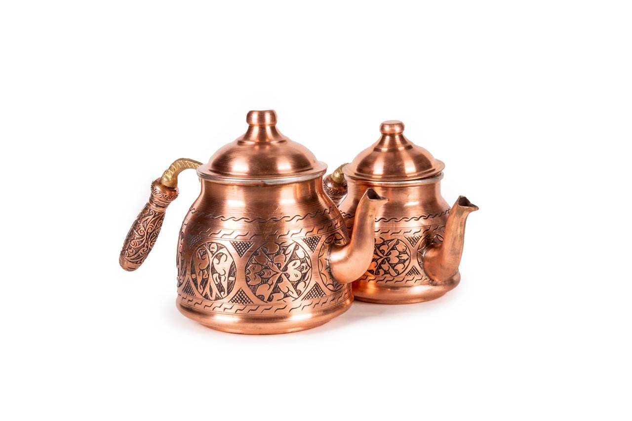 Handygoo Old Passion El Yapımı Kırmızı Eskitme Bakır Çaydanlık, üzeri el işçiliği ile donatılmıştır. Tamamen el yapımı eskitme bakır çaydanlık, 1,8 lt lik alt demlik ve 0,8 lt lik üst demlik hacmi ile son derece ideal boyutlardadır. Kalın bakırdan üretilmiştir ve ağırlığı 1 kg (+50)(-50) dır. 4-6 kişi için son derece kullanışlıdır. Ürünün içi tamamen kalaylanmış olup ürünün kulpları ise ahşap malzemedir. Ürün, bu ahşap kulplar üzerindeki sedef işçiliği ile bir kat daha güzelleşmekte iken, hem dekoratif, hem ergonomik hem de şık görüntüsü ile kullanmaktan zevk alacağınız aynı zamanda sevdiklerinize de mutlaka hediye etmek isteyeceğiniz bir üründür. Sitemizde eskitme, nikelajlı ve kırmızı bakır modeli olmak üzere 3 farklı seçeneği olan bakır çaydanlık ürününe ücretsiz kargo fırsatı ile sahip olabilirsiniz.