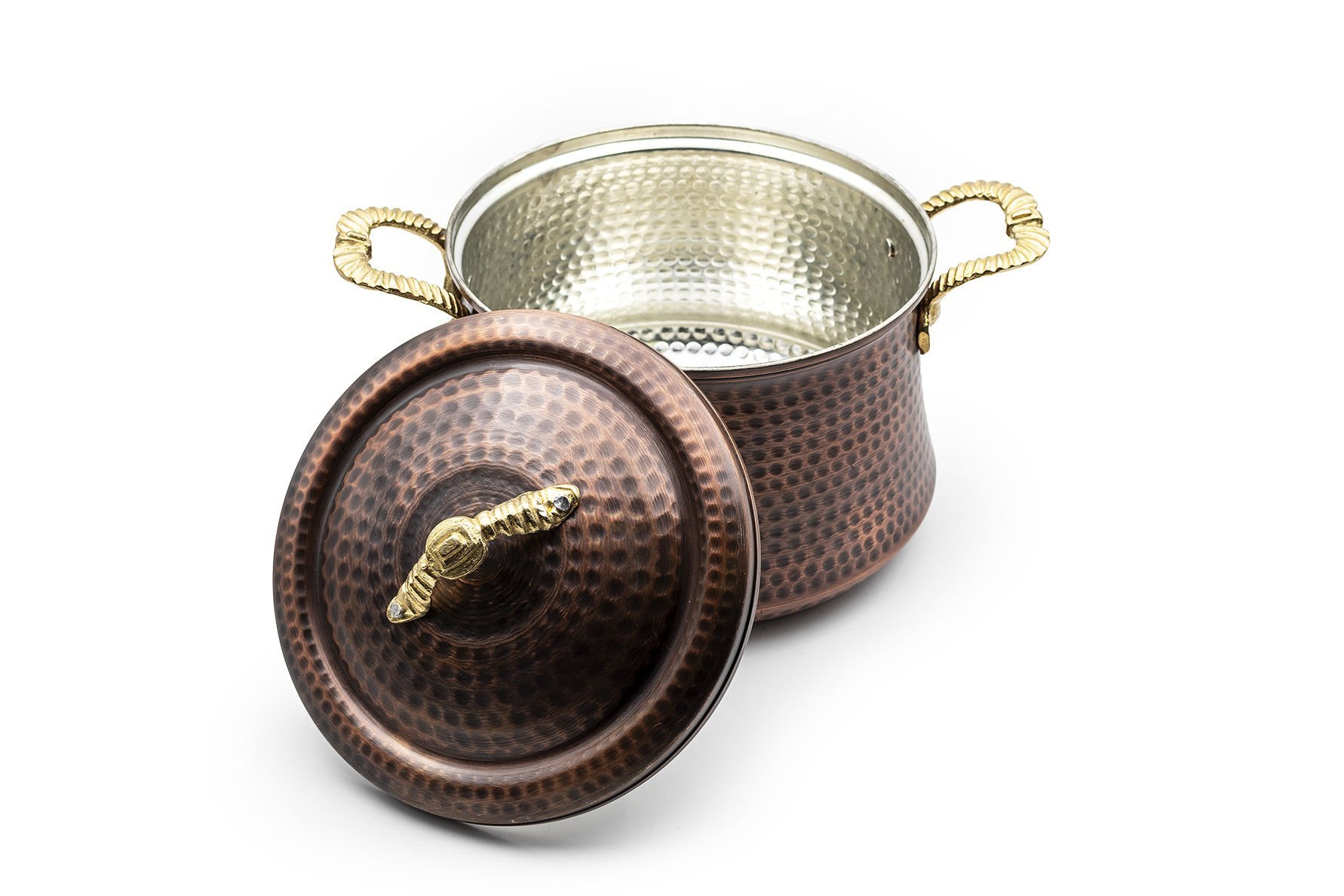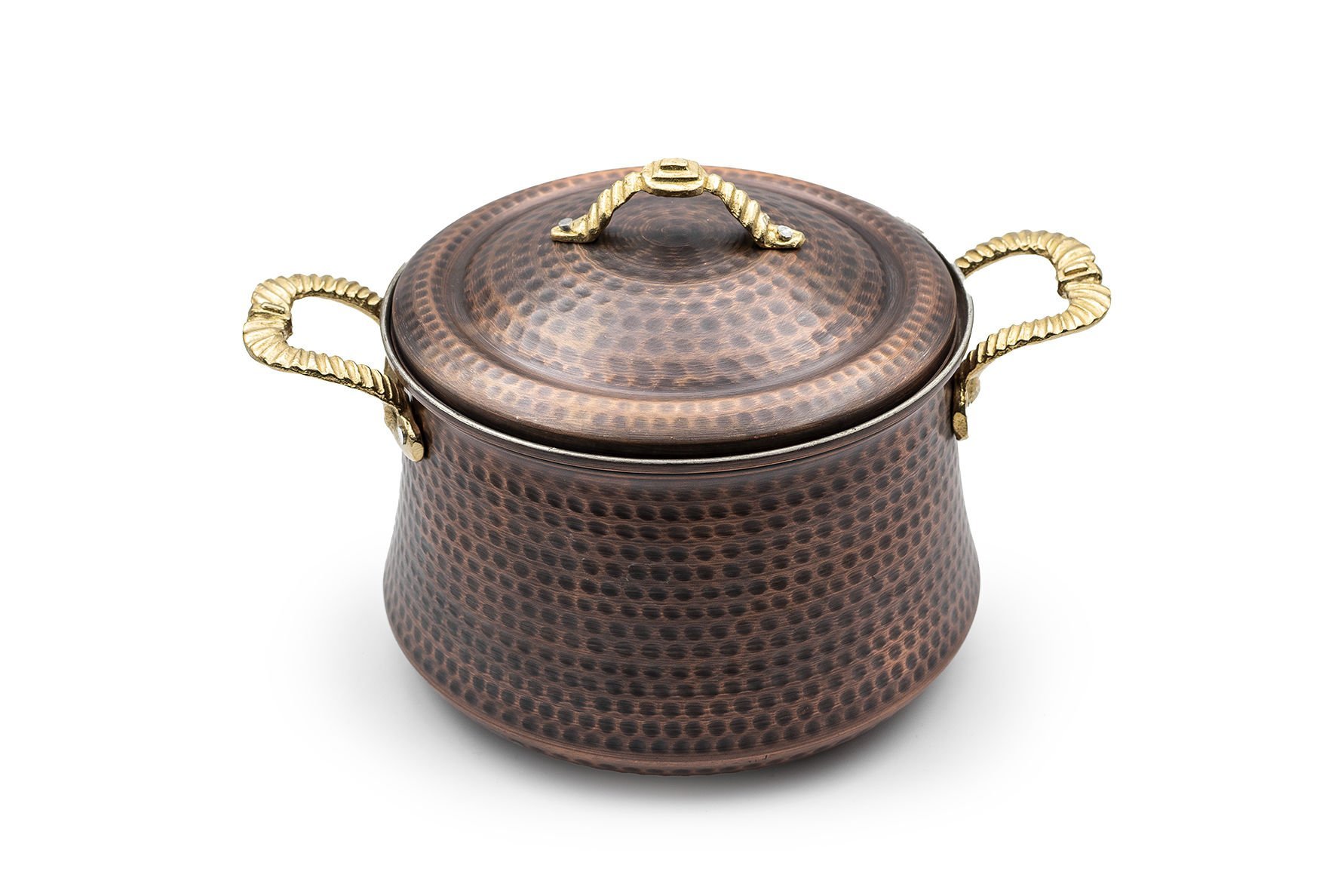 Handygoo Old Town Bakır Tencere, nostaljik ve modern görüntüyü birlikte barındıran bakır tencere modelimiz, %100 bakır ve kendi imalatımızdır. Kalın bakırdan üretilmiştir. Üç farklı boy seçeneği bulunmaktadır. En küçük boy bakır tencere modelimiz 2 lt hacminde, 15,5 ağız, 18 cm taban çapına ve 15 cm yüksekliğe sahiptir. Orta boy bakır tencere modelimiz ise, 3 lt hacminde olup, 18,5 ağız, 20 cm taban çapına sahip ve toplam yüksekliği 18 cm dir. Enbüyük bakır tencere modelimiz ise 4,5 lt hacmindedir. 22 cm ağız, 24 cm taban çapı bulunmakta ve 21,5 cm yüksekliğe sahiptir. Tüm tencelerimizin iç kısmı kalaylanmıştır. Günlük kullanıma uygundur.