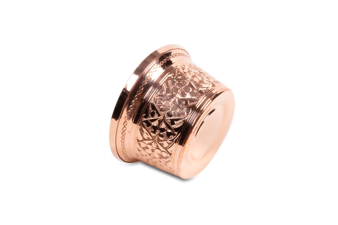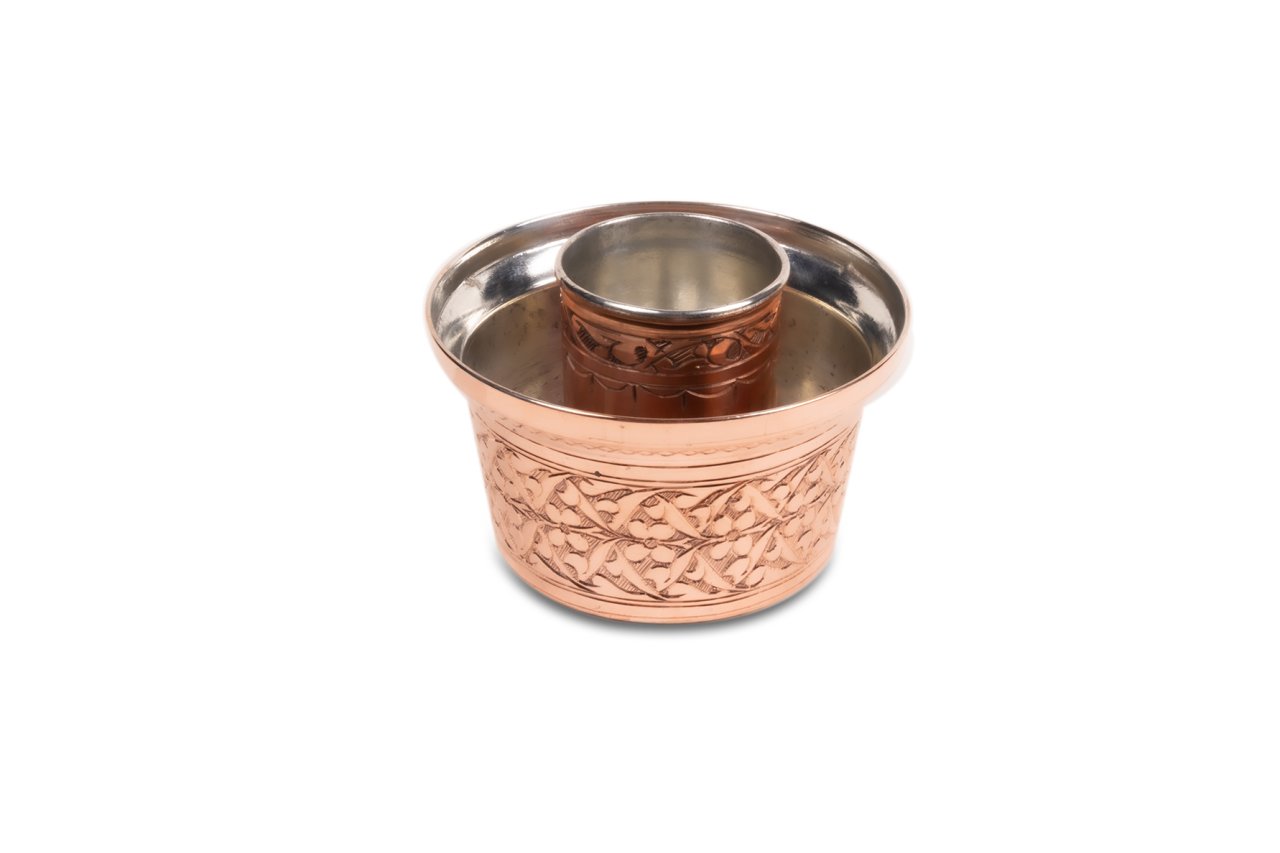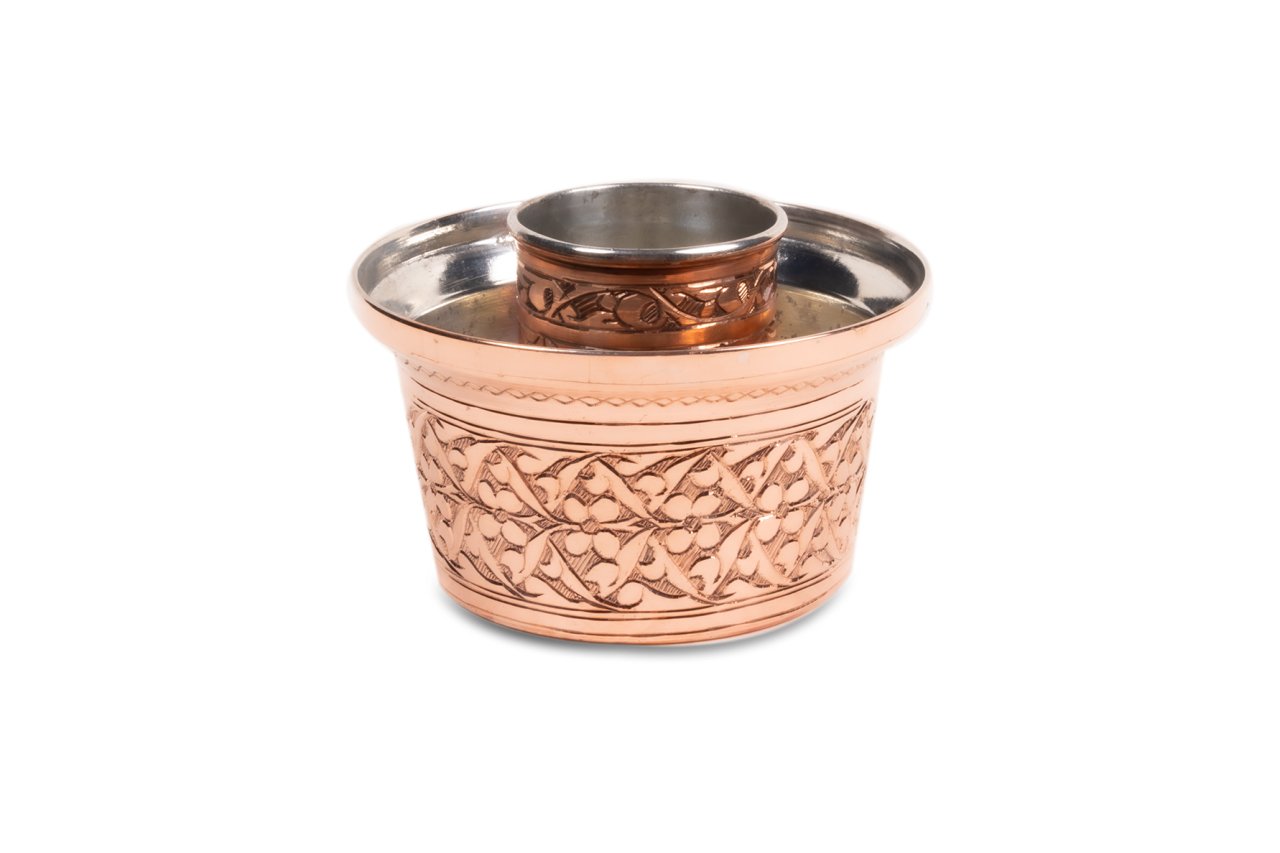 Handygoo Papatya İşlemeli Bakır Ehlikeyf tamamen elde işlenmiş ve üretilmiştir. Bakır işlemeleri ağır işlemedir. Bardak haznesindeki işlemeleri özel imalatımız olup ülkemizde aynı model bulunmamaktadır. Ürün ile içeceklerinizi soğuk bir şekilde servis edebilir ve tüketebilirsiniz. Kalın bakırdan üretilmiştir. İçi kalaylı olan ürünün dış kısmı kararmaya karşı koruyucu madde ile kaplanmıştır. Çapı 12 cm, yüksekliği ise 7,5 cm dir. Ürününün haznesine buz, orta kısmına ise bardağınızı yerleştirerek içeceğinizin soğuk kalmasını sağlayabildiğiniz gibi, hazneye dolduracağınız suyu buzdolabında buz haline getirerek de kullanım sağlayabilirsiniz. Ürün el işlemesi olduğundan görseldeki işlemelerinden bir miktar farklılık içerebilmektedir.