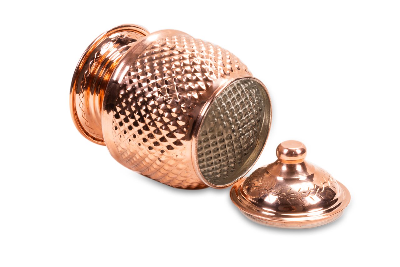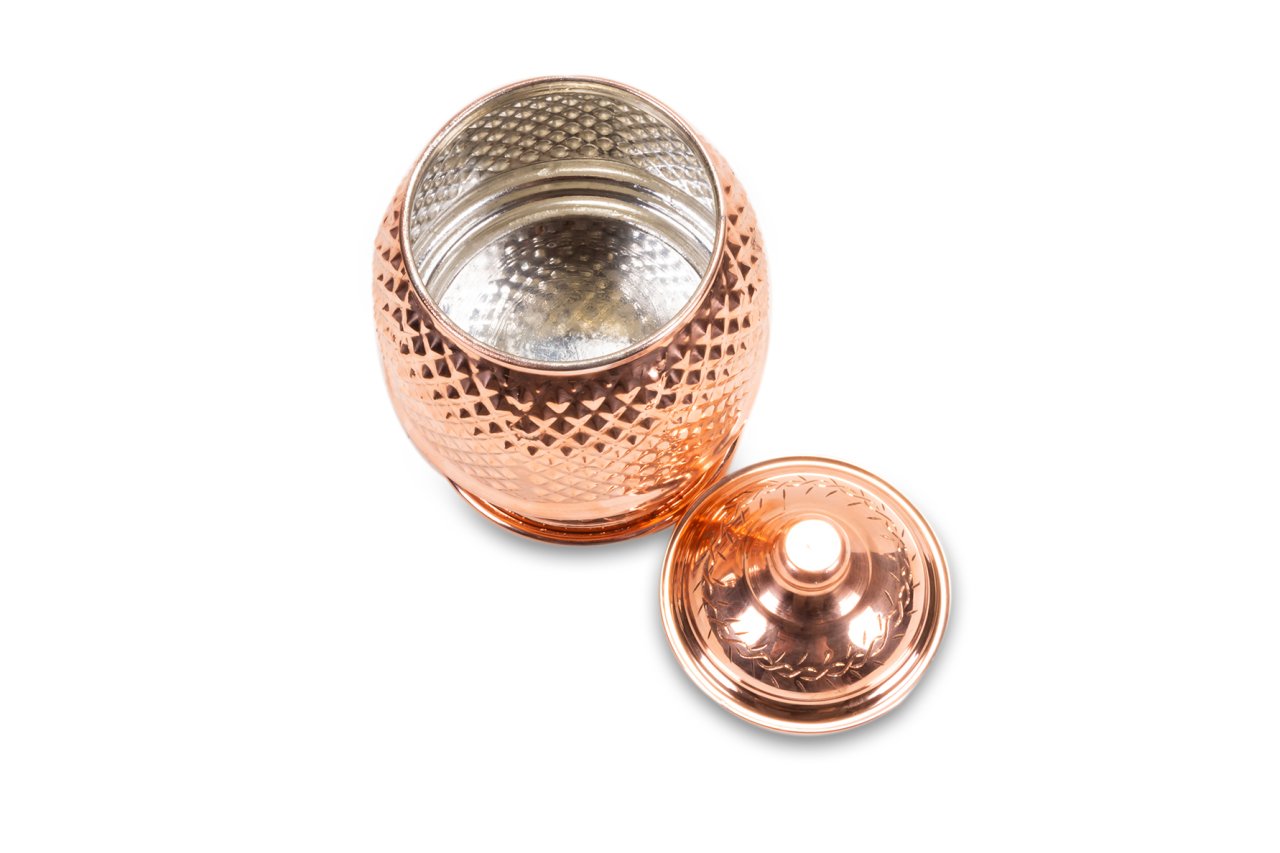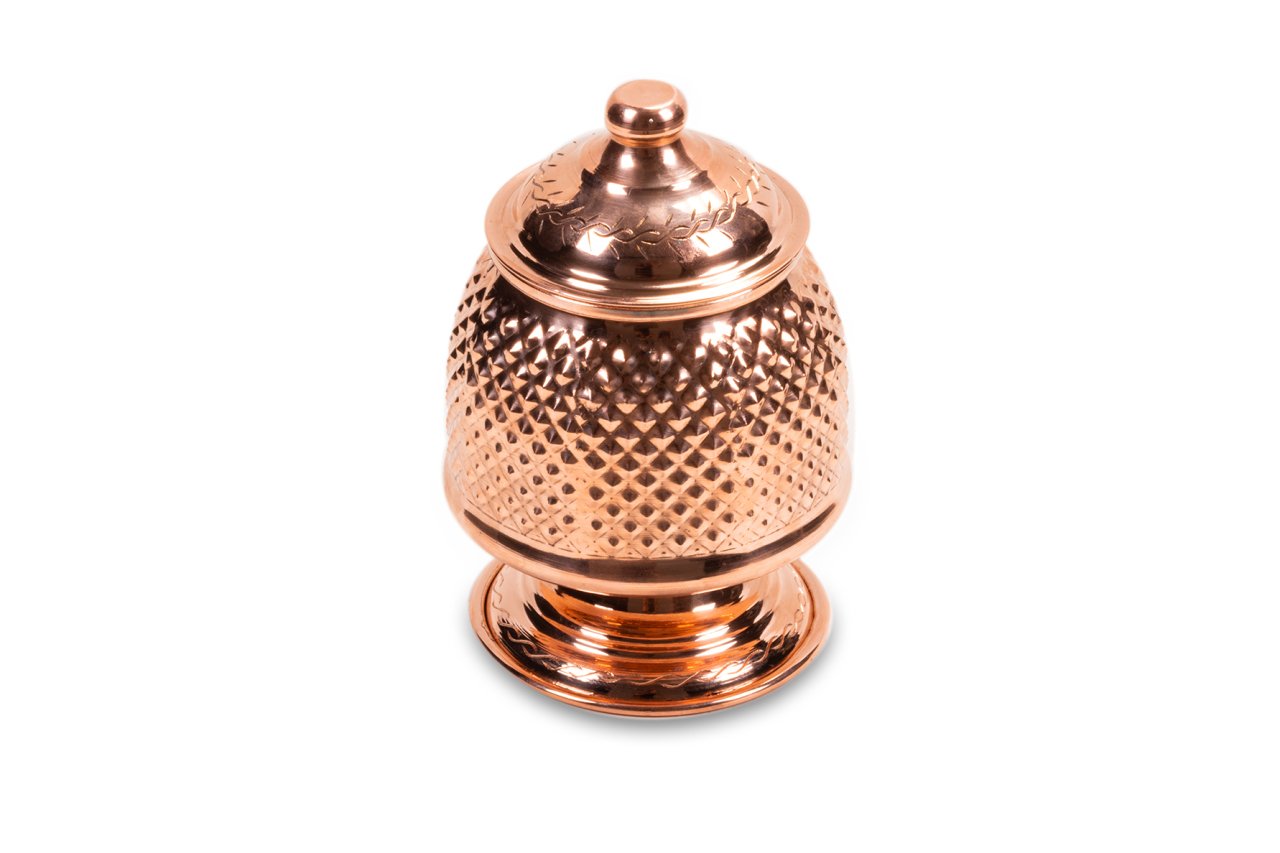 Handygoo Piramitli Bakır Şekerlik, çok özel bir tasarım. Çay ve benzeri servisleriniz için tasarlandı. Bakır Şekerlik el yapımı olup üzerindeki piramitlerin tamamı el yapımıdır. Ürünün ağız çapı 8,5 cm, taban çapı 12 cm dir. Ürün yüksekliği 17 cm dir. Şekerlik ayaklığının çapı ise 10 cm dir. Ürünün içi kalaylanmıştır. Hem dekoratif hem de şık görüntüsü ile evinizde ve iş yerinizde günlük olarak kullanmaktan büyük zevk duyacağınız ürün, sitemizdeki diğer tüm bakır ürünler ile konbinlenebilmektedir.