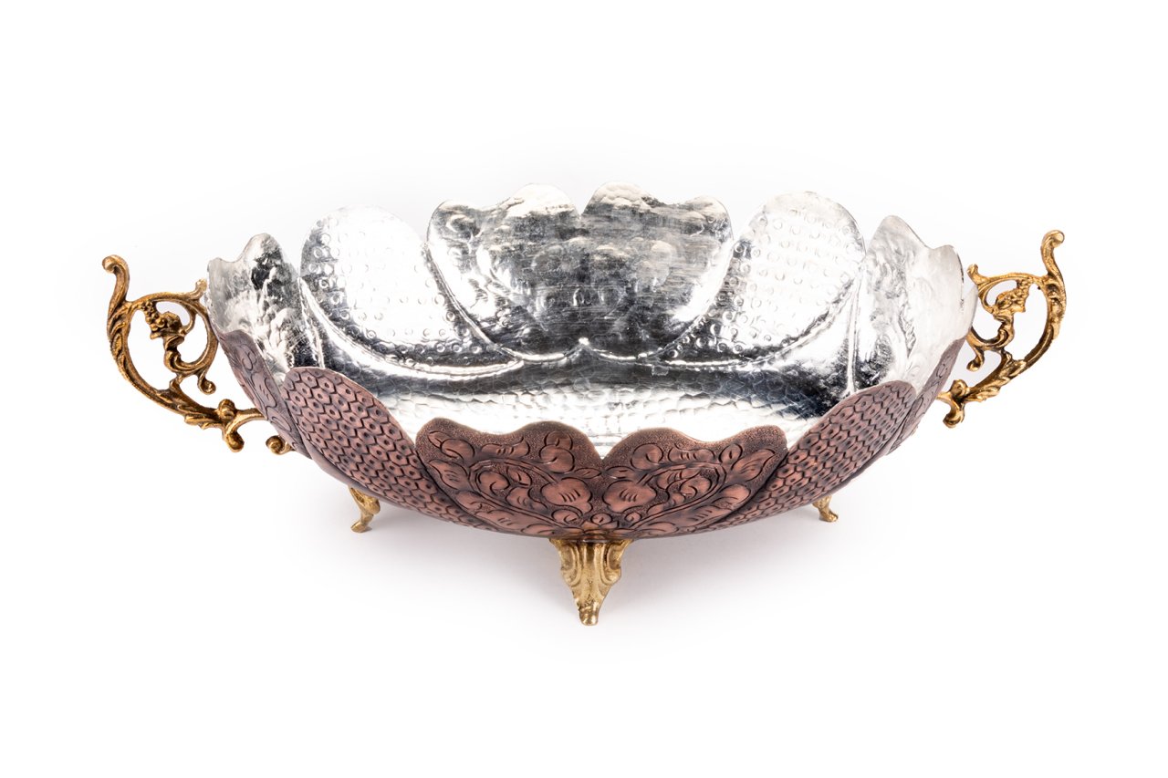 Handygoo Plus Bronz Eskitme Bakır Gondol Tepsi, sunum ve servis modelleri içerisinde son derece özgün ve yaratıcı bir şekilde ön plana çıkıyor. Ürün kendi imalatımız olup kulpları ve ayakları hariç tamamı kalın bakırdan üretilmiştir. Bakır Gondol ürünümüzün kulpları ve ayakları döküm pirinçtir. Bakır gondol üzerinde farklı iki bakır tasarım metodu kullanılmıştır. Bakır gondol ürünümüzün dış yüzeyi tamamı bakır nakış ustalarımızın yaptığı karakteristik el işleme ve el dövmesi örnekleri ile kaplıdır. İç yüzey ise yine elde dövülerek şekillendirilmiştir. Bakır tepsi yada bakır gondol ürünümüzün yan duvarlarını süsleyen muntazam dalga şekilleri ise yine elde kesilerek hayat bulmuştur. İç yüzey kalaylıdır. Bakır gondol ürünümüzün sitemizde 4 farklı boy seçeneği ve ayrıca set olarak satışa sunulmuş olan seçeneği yer almaktadır. Ürünümüzün en ufak boyu 17 cm en, 24 cm boy ölçüsüne sahiptir. Kulptan kulba ölçüldüğünde 32 cm boy ölçüsüne sahip olan ürünümüzün yüksekliği 11 cm dir. Orta boy ise, 21 cm en, 28 cm boy ve kulptan kulpa 36 cm dir. Yüksekliği 12 cm dir. En büyük boy bakır ürünümüz ise 24 cm en, 33 cm boy ölçüsündedir. Yüksekliği 13 cm olan ürünümüzün kulptan kulpa boy ölçüsü 41 cm dir. Battal boyun ise 28,5 cm en, 12,5 yükseklik ve 46 cm lik boy ölçüsü yer almaktadır. Ürünümüz ev ve iş yerlerinizin dekorasyonuna, servis ve sunumlarınıza bambaşka bir güzellik katacaktır. Tüm ürünlerimizde olduğu gibi ücretsiz kargo fırsatı ile sahip olabileceğiniz ürünümüzü güvenli alış veriş ile satın alabilirsiniz.