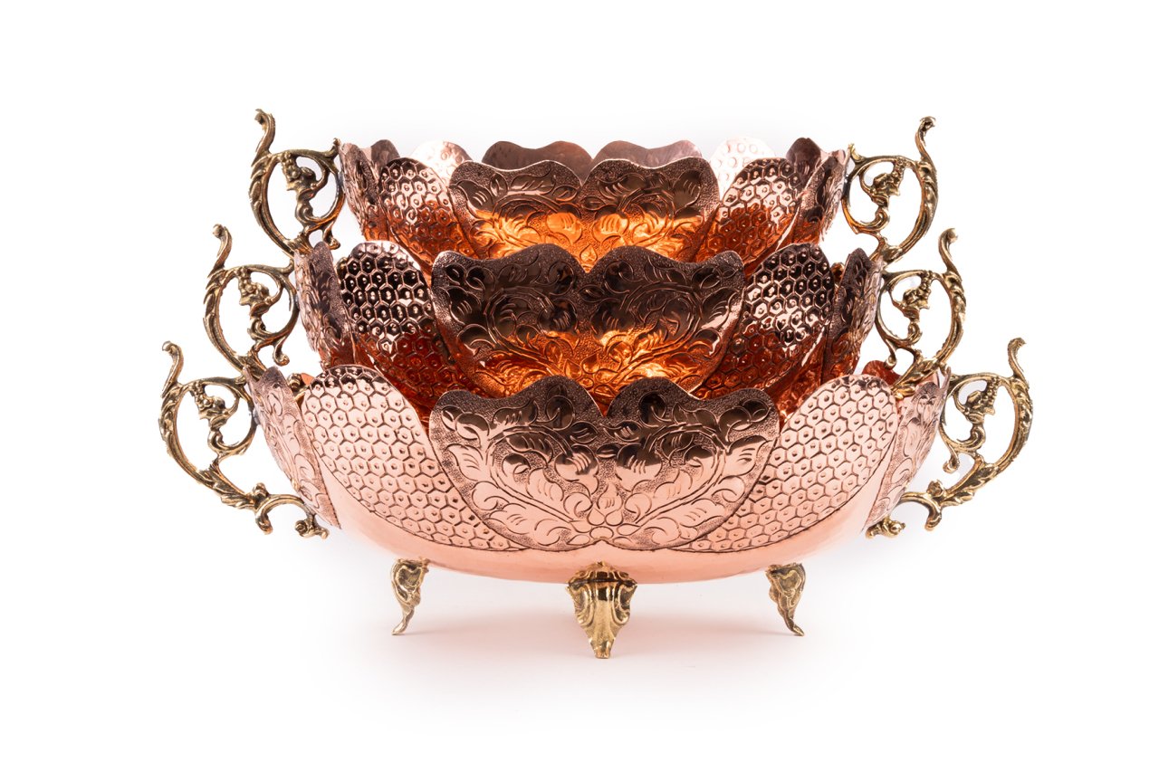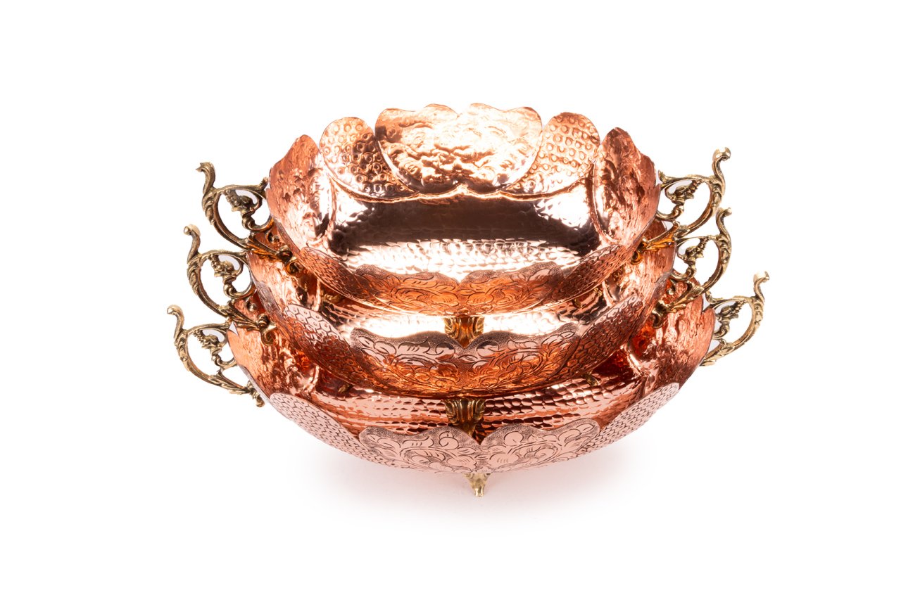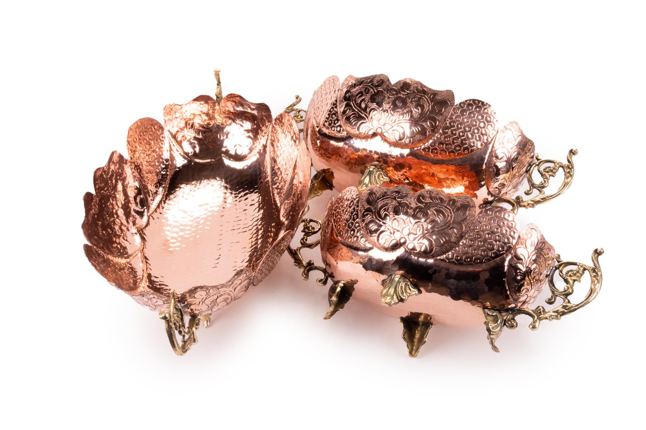 Handygoo Plus Kırmızı Bakır Gondol Seti, sunum ve servis modelleri içerisinde son derece özgün ve yaratıcı bir şekilde ön plana çıkıyor. Ürünler kendi imalatımız olup kulpları ve ayakları hariç tamamı kalın bakırdan üretilmiştir. Bakır Gondol Seti ürünümüzün kulpları ve ayakları döküm pirinçtir. Bakır gondol modelleri üzerinde farklı iki bakır tasarım metodu kullanılmıştır. Bakır gondol seti ürünümüzün dış yüzeyi tamamı bakır nakış ustalarımızın yaptığı karakteristik el işleme ve el dövmesi örnekleri ile kaplıdır. İç yüzey ise yine elde dövülerek şekillendirilmiştir. Bakır tepsi yada bakır gondol seti ürünümüzün yan duvarlarını süsleyen muntazam dalga şekilleri ise yine elde kesilerek hayat bulmuştur. İç yüzey kalaylıdır. Set içerisindeki en ufak boy bakır gondol 17 cm en, 24 cm boy ölçüsüne sahiptir. Kulptan kulpa ölçüldüğünde 32 cm boy ölçüsüne sahip olan ürünümüzün yüksekliği 11 cm dir. Orta boy ise, 21 cm en, 28 cm boy ve kulptan kulpa 36 cm dir. Yüksekliği 12 cm dir. En büyük boy ise 24 cm en, 33 cm boy ölçüsündedir. Yüksekliği 13 cm olan ürünümüzün kulptan kulpa boy ölçüsü 41 cm dir. Ürünümüz ev ve iş yerlerinizin dekorasyonuna, servis ve sunumlarınıza bambaşka bir güzellik katacaktır. Tüm ürünlerimizde olduğu gibi ücretsiz kargo fırsatı ile sahip olabileceğiniz ürünümüzü güvenli alış veriş ile satın alabilirsiniz.