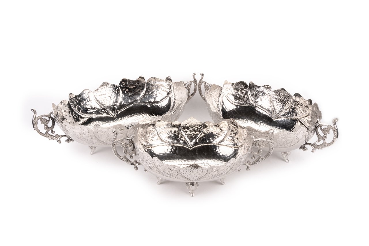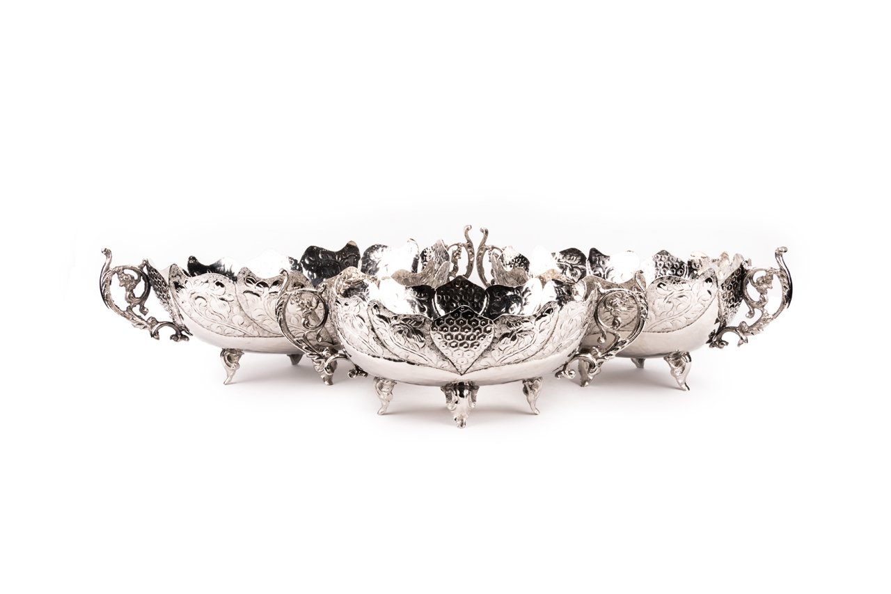 Handygoo Plus Nikelajlı Bakır Gondol Seti, sunum ve servis modelleri içerisinde son derece özgün ve yaratıcı bir şekilde ön plana çıkıyor. Ürünler kendi imalatımız olup kulpları ve ayakları hariç tamamı kalın bakırdan üretilmiştir. Bakır Gondol Seti ürünümüzün kulpları ve ayakları döküm pirinçtir. Bakır gondol modelleri üzerinde farklı iki bakır tasarım metodu kullanılmıştır. Bakır gondol seti ürünümüzün dış yüzeyi tamamı bakır nakış ustalarımızın yaptığı karakteristik el işleme ve el dövmesi örnekleri ile kaplıdır. İç yüzey ise yine elde dövülerek şekillendirilmiştir. Bakır tepsi yada bakır gondol seti ürünümüzün yan duvarlarını süsleyen muntazam dalga şekilleri ise yine elde kesilerek hayat bulmuştur. İç yüzey kalaylıdır. Set içerisindeki en ufak boy bakır gondol 17 cm en, 24 cm boy ölçüsüne sahiptir. Kulptan kulpa ölçüldüğünde 32 cm boy ölçüsüne sahip olan ürünümüzün yüksekliği 11 cm dir. Orta boy ise, 21 cm en, 28 cm boy ve kulptan kulpa 36 cm dir. Yüksekliği 12 cm dir. En büyük boy ise 24 cm en, 33 cm boy ölçüsündedir. Yüksekliği 13 cm olan ürünümüzün kulptan kulpa boy ölçüsü 41 cm dir. Ürünümüz ev ve iş yerlerinizin dekorasyonuna, servis ve sunumlarınıza bambaşka bir güzellik katacaktır. Tüm ürünlerimizde olduğu gibi ücretsiz kargo fırsatı ile sahip olabileceğiniz ürünümüzü güvenli alış veriş ile satın alabilirsiniz.