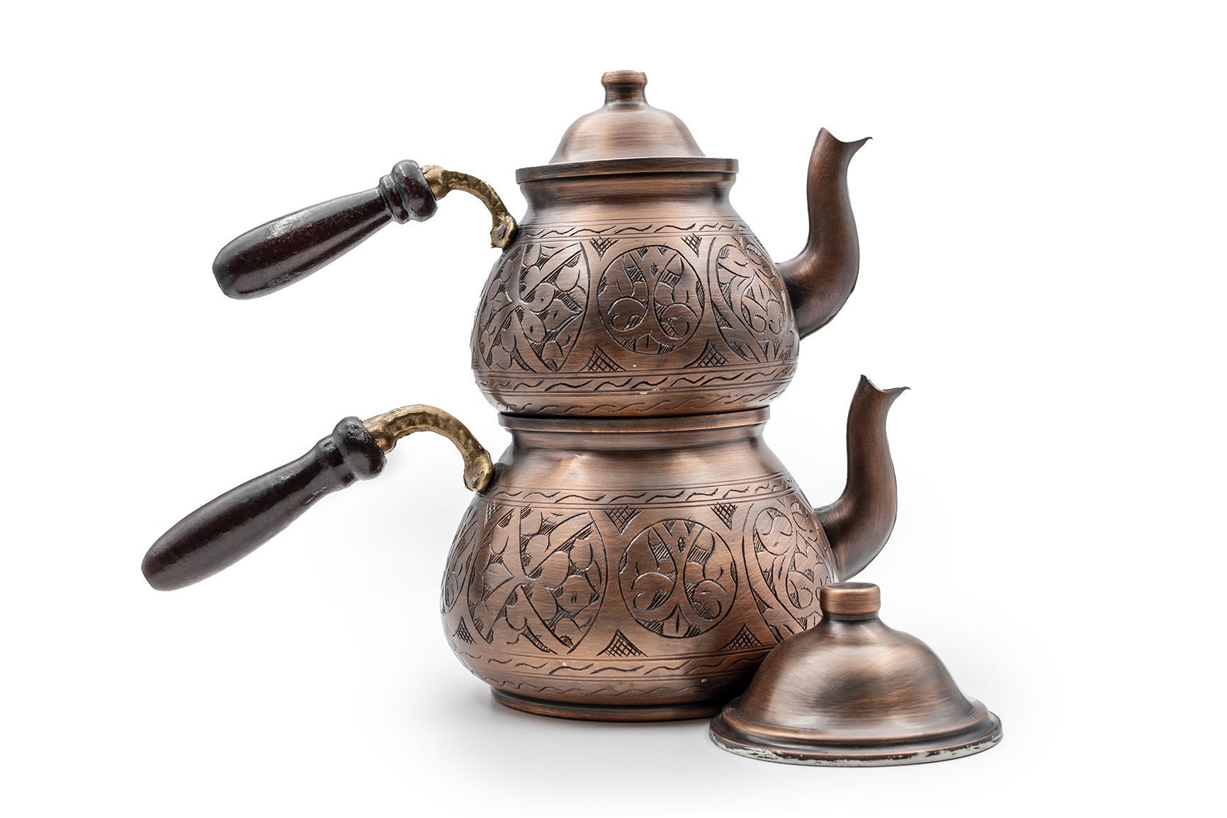 Handygoo Raindrop Bakır Çaydanlık, dövme bakır sanatının tüm güzelliğini üzerinde taşımaktadır. 1,8 lt lik alt demlik ve 0,8 lt lik üst demlik hacmi ile son derece ideal boyutlardadır. Kalın bakırdan üretilmiştir ve ağırlığı 1 kg (+50)(-50) dır. 4-6 kişi için son derece kullanışlıdır. Ürünün içi tamamen kalaylanmış olup ürünün kulpları ise ahşap malzemedir.Hem dekoratif, hem ergonomik hem de şık görüntüsü ile kullanmaktan zevk alacağınız aynı zamanda sevdiklerinize de mutlaka hediye etmek isteyeceğiniz bir üründür. Sitemizde nikelajlı ve kırmızı bakır modeli olmak üzere 2 farklı seçeneği daha olan bakır çaydanlık ürününe ücretsiz kargo fırsatı ile sahip olabilirsiniz.