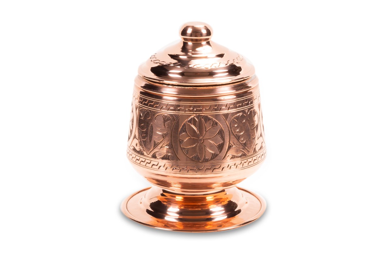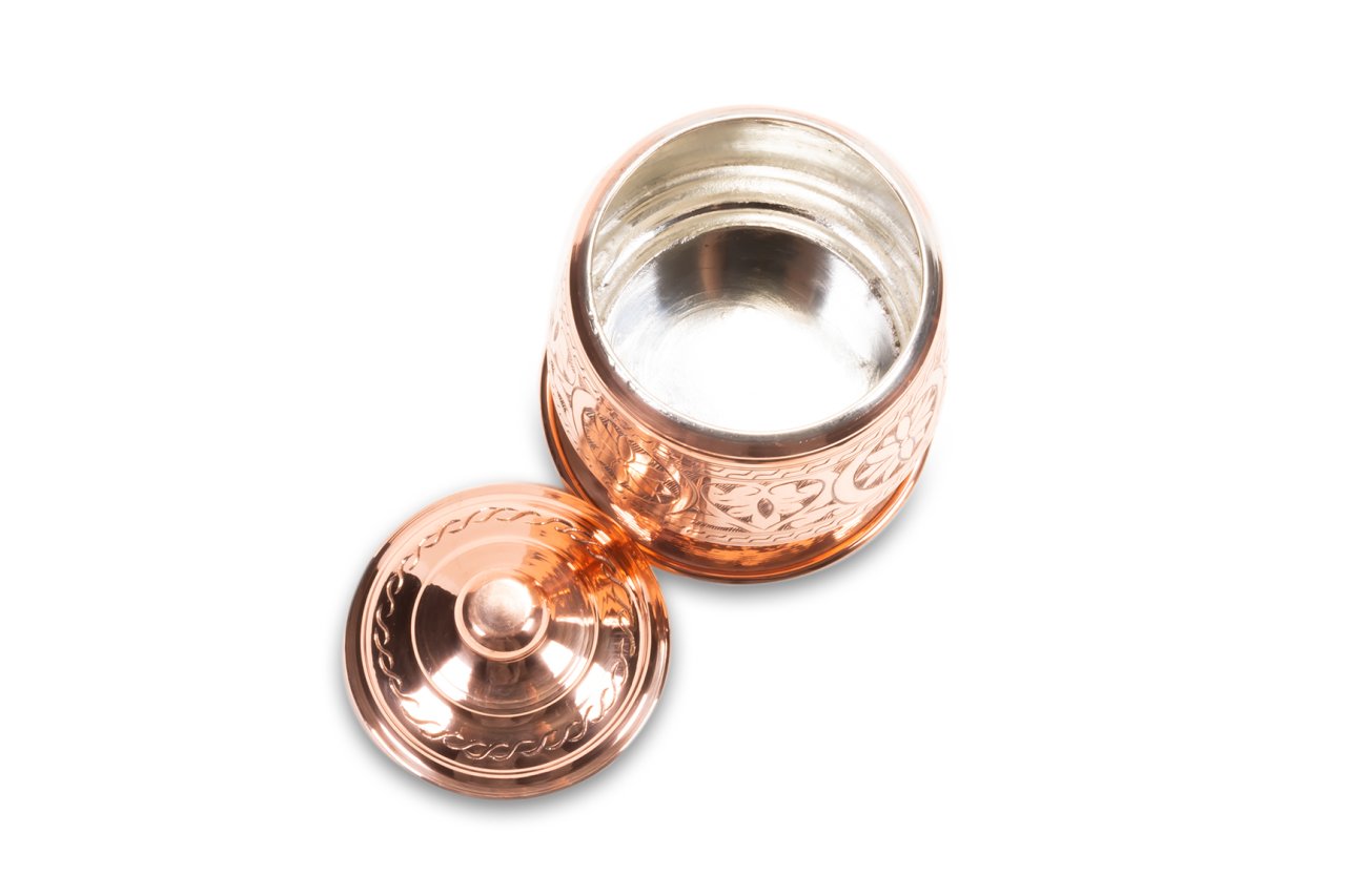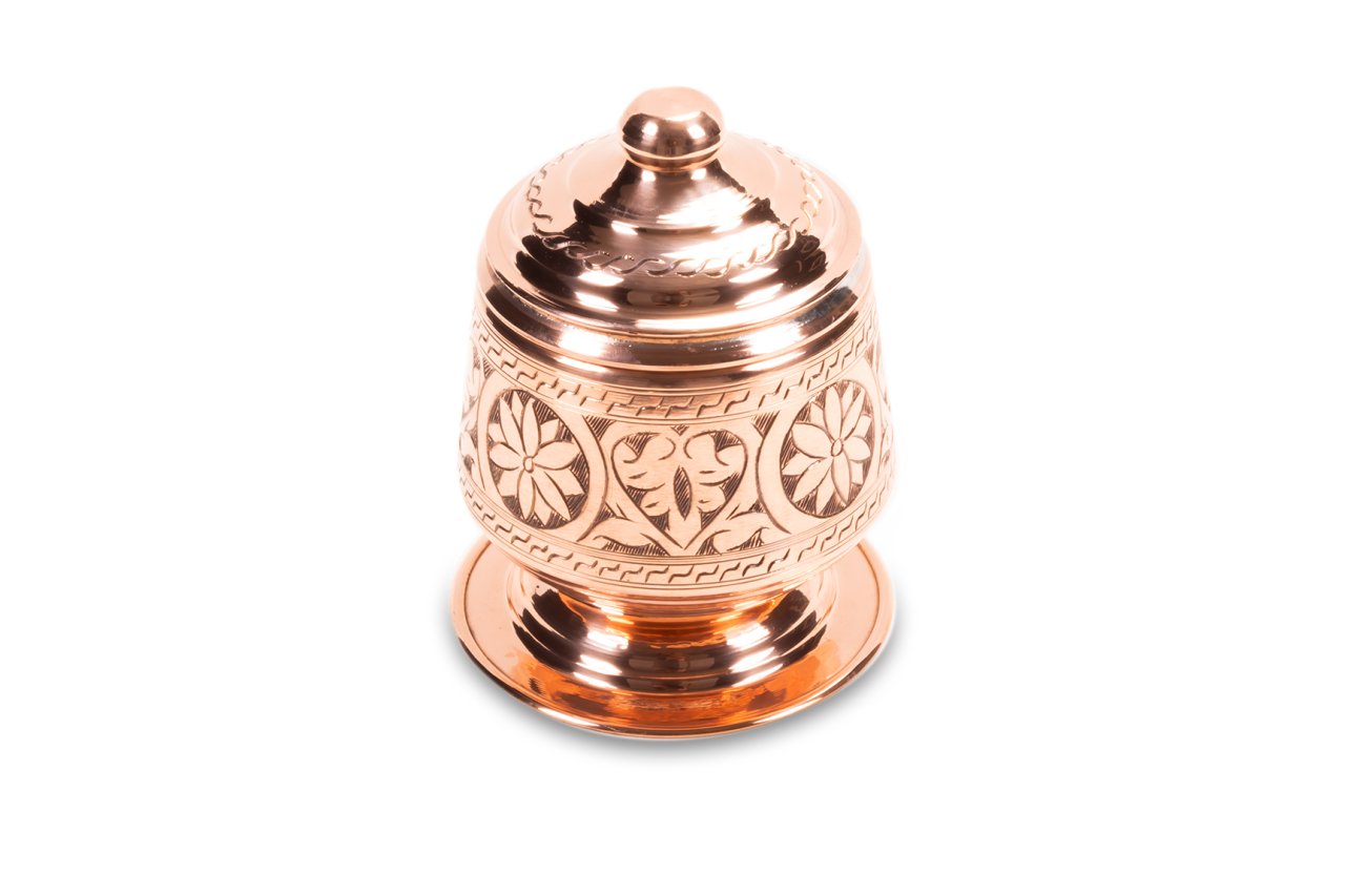 Handygoo Candy Nikelajlı El İşlemesi Bakır Şekerlik, çay ve benzeri servisleriniz için tasarlandı. Bakır Şekerlik el yapımı olup üzerindeki işlemelerin tamamı el işlemesidir. Ürünün çapı 8 cm iken, yüksekliği 15 cm dir. Şekerlik ayaklığının çapı ise 10,5 cm dir. Ürün, nikelajlı olarak tasarlanmış olup içi kalaylanmıştır. Hem dekoratif hem de şık görüntüsü ile evinizde ve iş yerinizde günlük olarak kullanmaktan büyük zevk duyacağınız ürün, sitemizdeki diğer tüm bakır ürünler ile konbinlenebilmektedir.