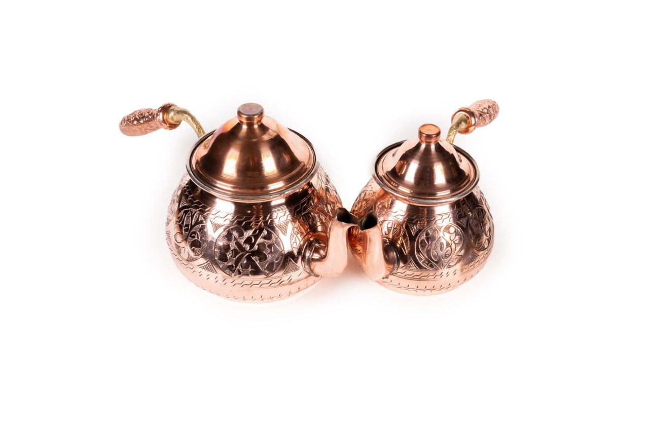 Handygoo Red Dragon El İşlemesi Bakır Çaydanlık, 1,8 lt lik alt demlik ve 0,8 lt lik üst demlik hacmi ile son derece ideal boyutlardadır. Kalın bakırdan üretilmiştir ve ağırlığı 1 kg (+50)(-50) dır. 4-6 kişi için son derece kullanışlıdır. Başından sonuna kadar bakır işleme sanatının en güzel örnekleri ile bezenmiş durumda olan ürünümüz tamamen el yapımıdır. İçi kalaylı olan Handygoo Red Dragon El İşlemesi Bakır Çaydanlık kendi imalatımızdır. Sitemizden çaydanlık modelimize uygun balkon sefası yada çaydanlık ısıtıcı modellerimizi ayrı olarak da satın almayı tercih edebilirsiniz. Günlük kullanıma uygun olan ürünümüzü ve diğer tüm bakır ürünlerimizi ücretsiz kargo fırsatı ile güvenle satın alabilirsiniz. Hediye olarak da sipariş verebileceğiniz ürünümüz için, satın alma ekranında hediye paketi ve hediye notu seçeneklerimizi de kullanabilirsiniz. Tüm kredi kartları ile taksit imkanlarından da yararlanabilirsiniz.