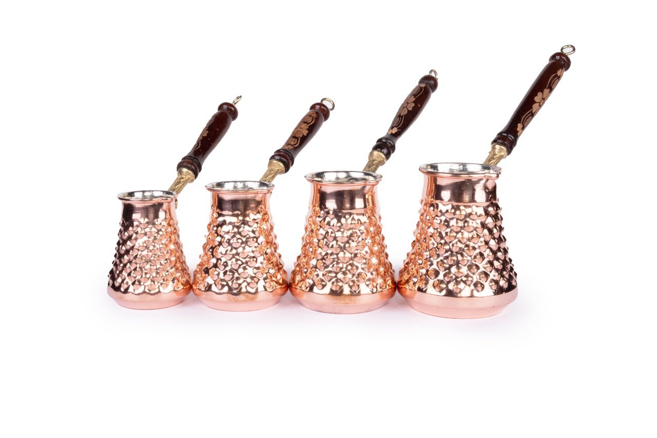 Handygoo Red Keops Bakır Cezve Seti, üzerindeki el yapımı piramit desenleri ile klasik cezve modellerine yeni bir alternatif oluşturuyor. Bakır cezve seti modellerimiz %100 kalın bakır ve el yapımı olarak tarafımızca üretilmiştir. Günlük kullanıma uygundur. Bakırın, ısıyı eşit oranda her tarafına iletmesinden dolayı, bakır cezvede pişirilen kahve diğer kahve pişirimlerine göre son derece kıvamlı ve lezzetli olmaktadır. El yakmaması için kulp kısmında ahşap malzeme kullanılmıştır. İçi tamamen kalaylanmıştır. Set içerisinde 2-4-5 ve 8 kişilik kullanım için ebat alternatifleri mevcuttur. 2 kişilik bakır cezvemiz, 5 cm ağız, 7 cm gövde çapına ve 8,5 cm yüksekliğe sahiptir. 4 kişilik model, 5,5 cm ağız, 8 cm gövde çapına ve 9,5 cm yüksekliğe sahiptir. 5 kişilik model, 6 cm ağız, 9 cm gövde çapına ve 10 cm yüksekliğe sahiptir. 8 kişilik modelimiz ise, 6,5 cm ağız, 10 cm gövde çapına ve 11,5 cm yüksekliğe sahiptir. Ücretsiz kargo fırsatı ve güvenli alış veriş ile evinize, iş yerinize alabileceğiniz ürünümüz, sevdiklerinize hediye etmek için de cazip bir alternatiftir.