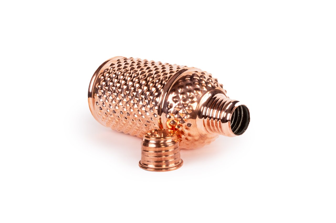 Handygoo Red Keops Bottle Bakır Matara, su, meyve suyu, kokteyl ve benzeri tüm soğuk içeceklerinizi muhafaza etmenin, sofralarda servis etmenin ve içmenin en yeni, en havalı yoludur. Kendi imalatımız olup %100 bakırdan üretilmiştir. İçi kalaylıdır. Sızdırma yapmaz. Sadece soğuk içecekler için tasarlanmıştır ve termos özelliği bulunmamaktadır. 1,5 lt hacminde olup, battal boydur. Üzerindeki piramit desenleri ve gövdesi tamamen el yapımıdır. Bakır matara ürünümüz, 10,5 cm taban çapı ve 23,5 cm boy ölçüsüne sahiptir.