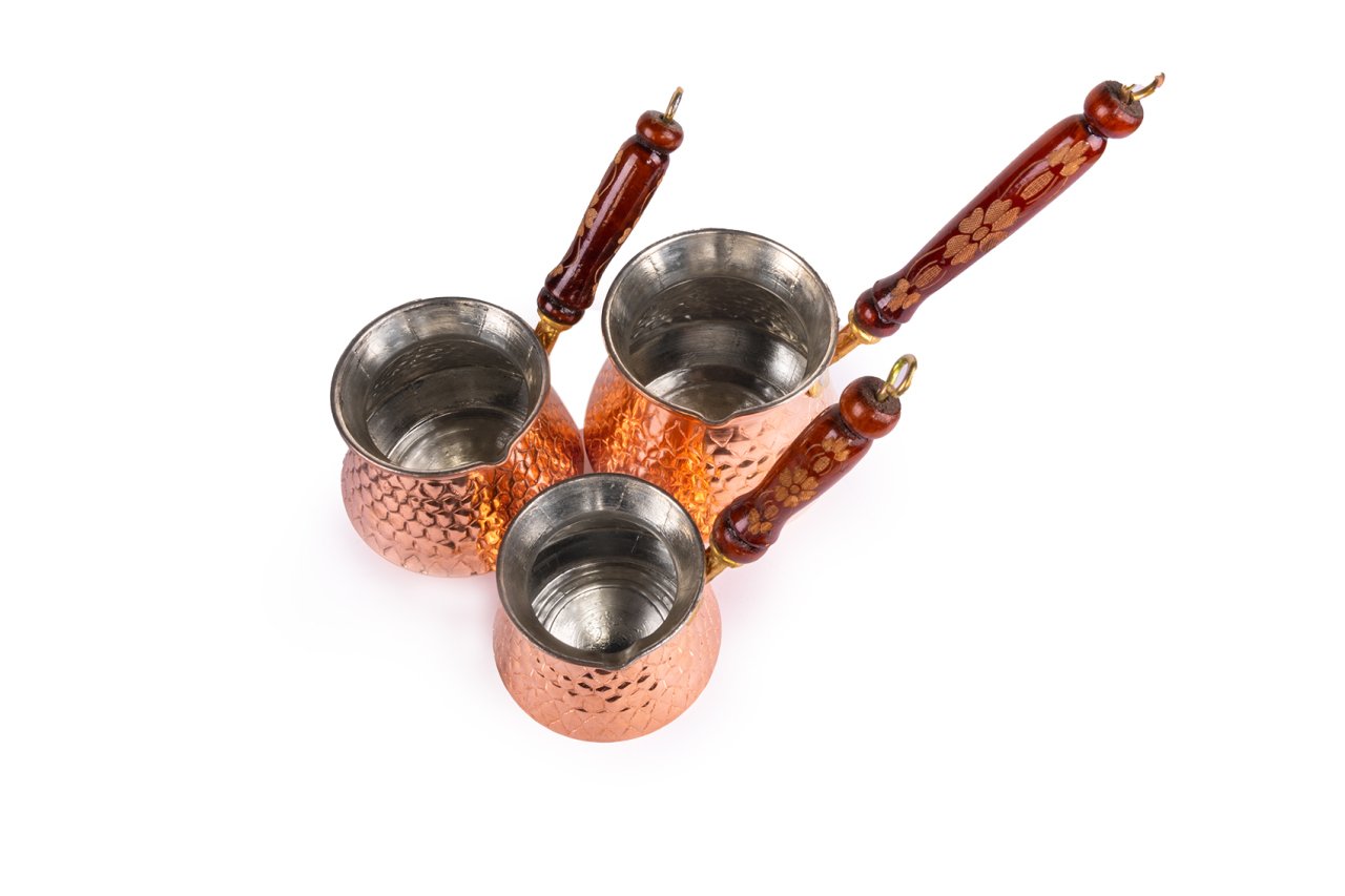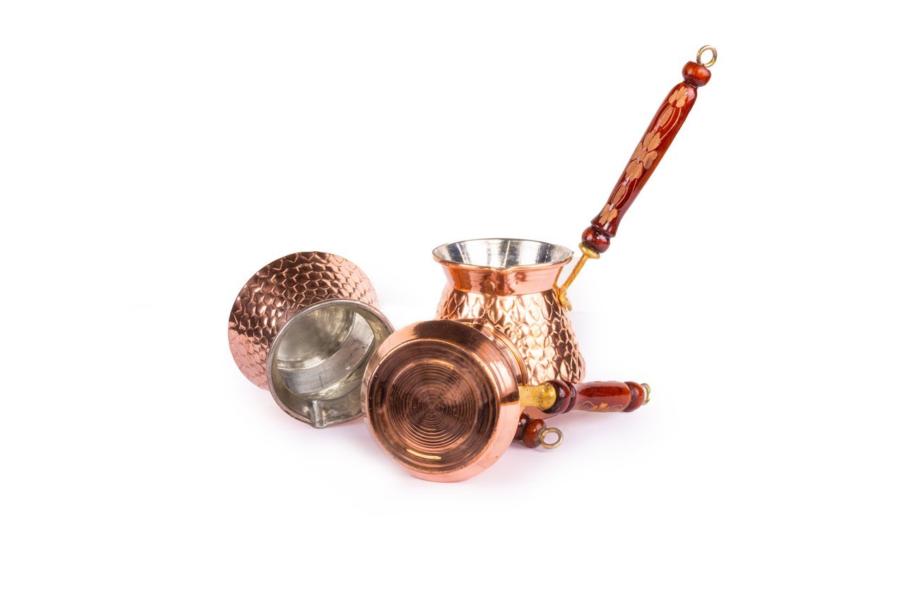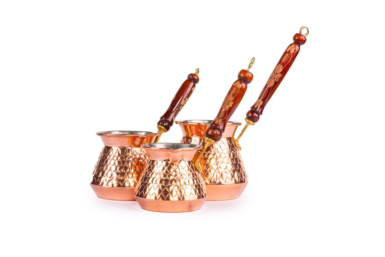 Handygoo Red Leaf Bakır Cezve Takımı 3 lü , sizler için özel olarak tasarlandı. Tamamen el yapımı olarak dövme bakırdan üretilen bakır cezve takımı, orjinal kızıl bakır rengi ile son derece modern ve dekoratif bir görüntüye sahiptir. Ürün, 2-4 ve 6 kişilik cezvelerden oluşmaktadır. 2 kişilk cezve 7 cm, 4 kişilik cezve 8 cm, 6 kişilik cezve 9 cm çapa sahiptir. Ürün yükseklikleri sırası ile 8-9 ve 10 cm dir. SÜrün, mutfağınızda vazgeçmek istemeyeceğiniz parçalardan biri olacak.