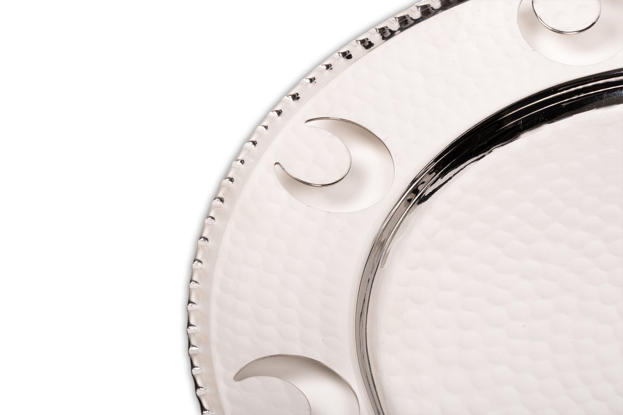 Handygoo Royal El Yapımı Dövme Bakır Supla, bakırın doğallığı, özgünlüğü ile sofra ve sunumlarınıza renk ve zevk katıyor. Göz alıcı rengi ve parlaklığı ile herkes tarafından fark edilen dövme bakır supla, 32 cm çapındadır. Ürün modelimizin kenarlarında hilal şeklinde boşluklar bulunmaktadır. İstediğiniz tüm sunum ve servislerinizde rahatlıkla ve zevkle kullanabileceğiniz ürünümüz Gaziantep'li işinin uzmanı bakır ustalarımız tarafından tamamen elde dövülerek üretilmiştir. Üretiminde kalın bakır kullanılan ürünümüz diğer malzemelerden üretilen supla modellerinden ayrılarak kendini her ortamda göstermesini biliyor. Özel tasarımımız olan ürünümüz, %100 elde üretildiği için size özeldir. Sizde dekoratif ve el yapımı bakır supla ve diğer ürünlerimize kolayca ve güvenli bir şekilde sahip olabilirsiniz. Ürünümüz tek supla olarak satılmaktadır. Parlak görünümü için nikelaj işlemi ile kaplanmıştır.