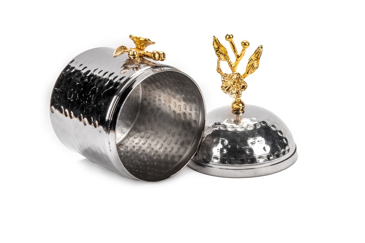 Handygoo Spice Box Bakır Baharatlık, baharat ve benzeri saklama ihtiyaçlarınıza tüm güzelliği ile yanıt veriyor. Dövme bakırdan üretilmiş olup, çekiç darbeleri ile şekillendirilmiştir. Ürün 9 cm çap ve 9 cm kapaksız yüksekliğe sahiptir. Kapaklı yüksekliği 20 cm dir. Özel olarak kalaylanmış iç kısmı ile göz kamaştıran ürün, günlük kullanıma son derece uygundur.