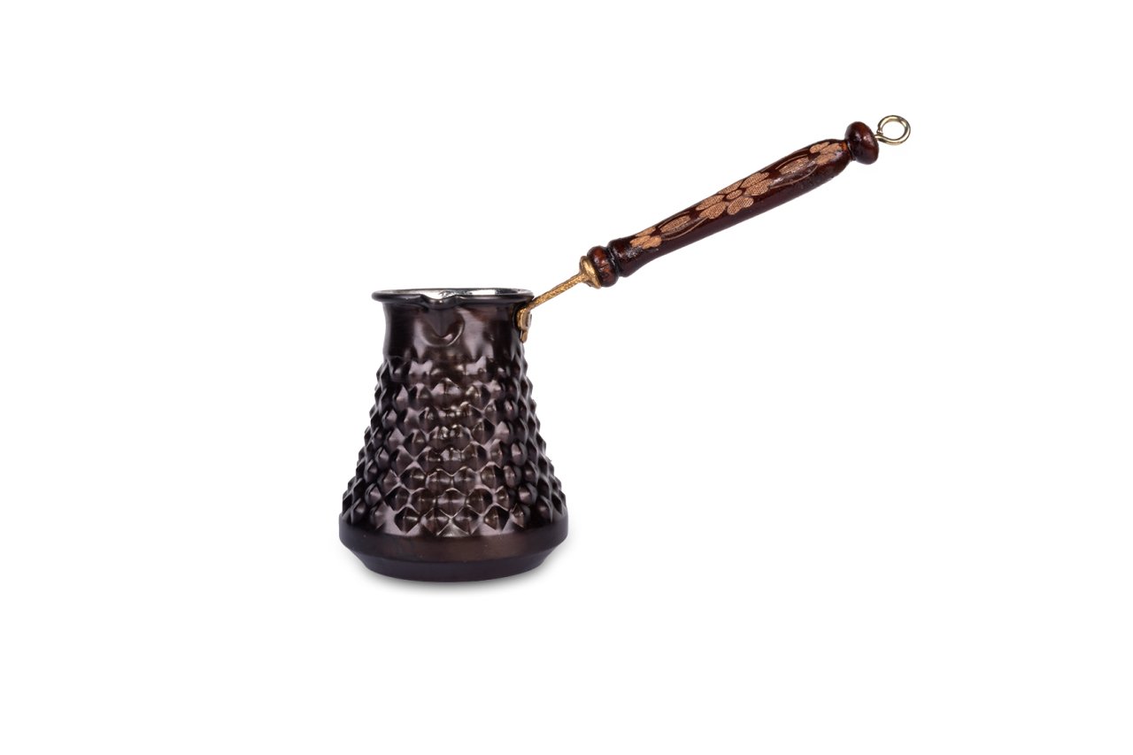Handygoo Siyah Keops Bakır Cezve, üzerindeki el yapımı piramit desenleri ile klasik cezve modellerine yeni bir alternatif oluşturuyor. Bakır cezve modelimiz %100 kalın bakır ve el yapımı olarak tarafımızca üretilmiştir. Günlük kullanıma uygundur. Bakırın, ısıyı eşit oranda her tarafına iletmesinden dolayı, bakır cezvede pişirilen kahve diğer kahve pişirimlerine göre son derece kıvamlı ve lezzetli olmaktadır. El yakmaması için kulp kısmında ahşap malzeme kullanılmıştır. İçi tamamen kalaylanmıştır. Ürünümüzün 2-4-5 ve 8 kişilik kullanım için ebat alternatifleri mevcuttur. 2 kişilik bakır cezvemiz, 5 cm ağız, 7 cm gövde çapına ve 8,5 cm yüksekliğe sahiptir. 4 kişilik model, 5,5 cm ağız, 8 cm gövde çapına ve 9,5 cm yüksekliğe sahiptir. 5 kişilik model, 6 cm ağız, 9 cm gövde çapına ve 10 cm yüksekliğe sahiptir. 8 kişilik modelimiz ise, 6,5 cm ağız, 10 cm gövde çapına ve 11,5 cm yüksekliğe sahiptir. Ücretsiz kargo fırsatı ve güvenli alış veriş ile evinize, iş yerinize alabileceğiniz ürünümüz, sevdiklerinize hediye etmek için de cazip bir alternatiftir.