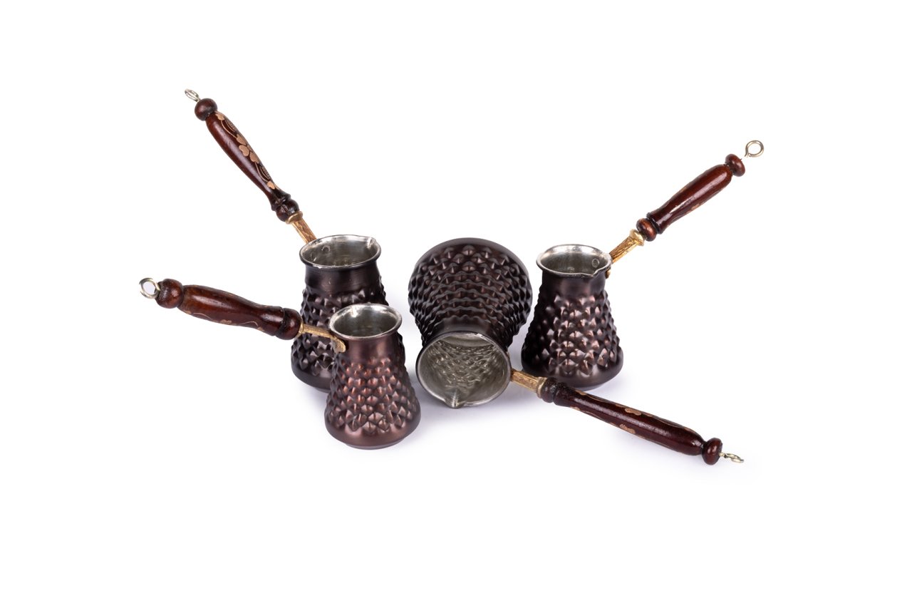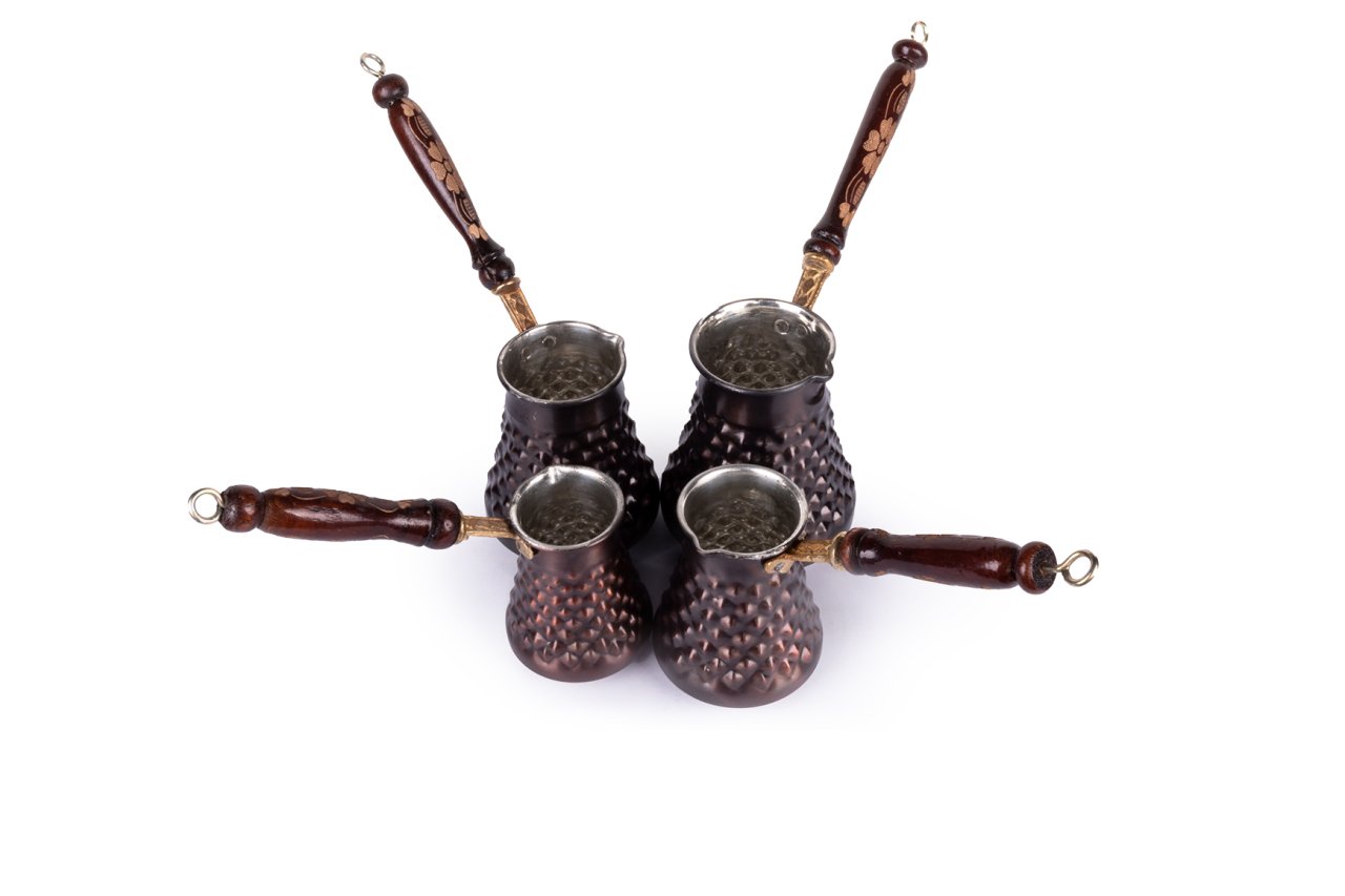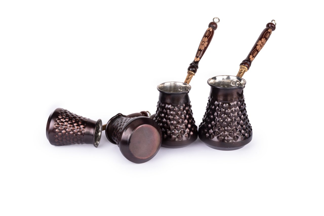 Handygoo Siyah Keops Bakır Cezve Seti, üzerindeki el yapımı piramit desenleri ile klasik cezve modellerine yeni bir alternatif oluşturuyor. Bakır cezve seti modellerimiz %100 kalın bakır ve el yapımı olarak tarafımızca üretilmiştir. Günlük kullanıma uygundur. Bakırın, ısıyı eşit oranda her tarafına iletmesinden dolayı, bakır cezvede pişirilen kahve diğer kahve pişirimlerine göre son derece kıvamlı ve lezzetli olmaktadır. El yakmaması için kulp kısmında ahşap malzeme kullanılmıştır. İçi tamamen kalaylanmıştır. Set içerisinde 2-4-5 ve 8 kişilik kullanım için ebat alternatifleri mevcuttur. 2 kişilik bakır cezvemiz, 5 cm ağız, 7 cm gövde çapına ve 8,5 cm yüksekliğe sahiptir. 4 kişilik model, 5,5 cm ağız, 8 cm gövde çapına ve 9,5 cm yüksekliğe sahiptir. 5 kişilik model, 6 cm ağız, 9 cm gövde çapına ve 10 cm yüksekliğe sahiptir. 8 kişilik modelimiz ise, 6,5 cm ağız, 10 cm gövde çapına ve 11,5 cm yüksekliğe sahiptir. Ücretsiz kargo fırsatı ve güvenli alış veriş ile evinize, iş yerinize alabileceğiniz ürünümüz, sevdiklerinize hediye etmek için de cazip bir alternatiftir.