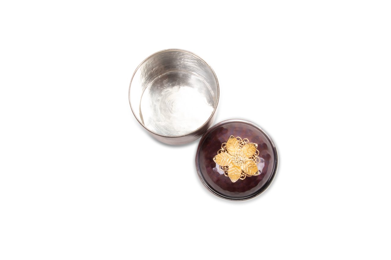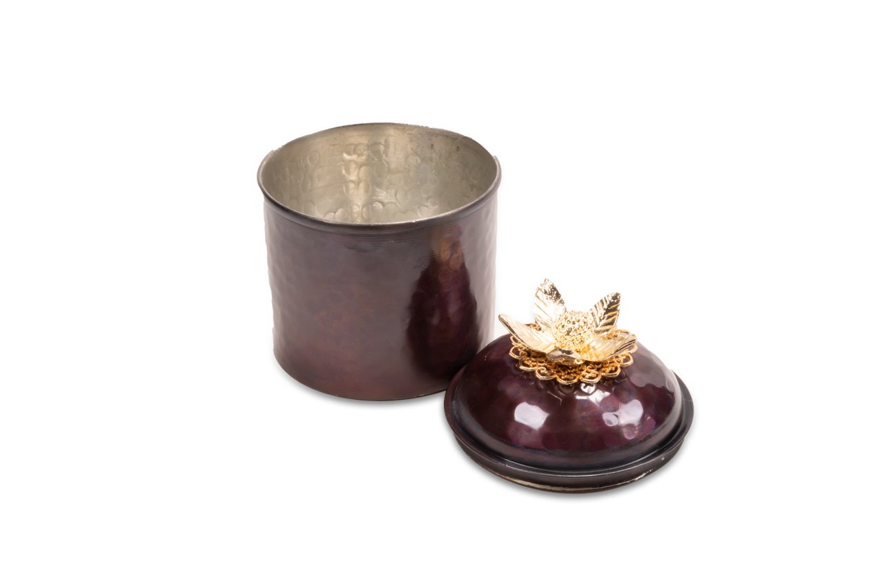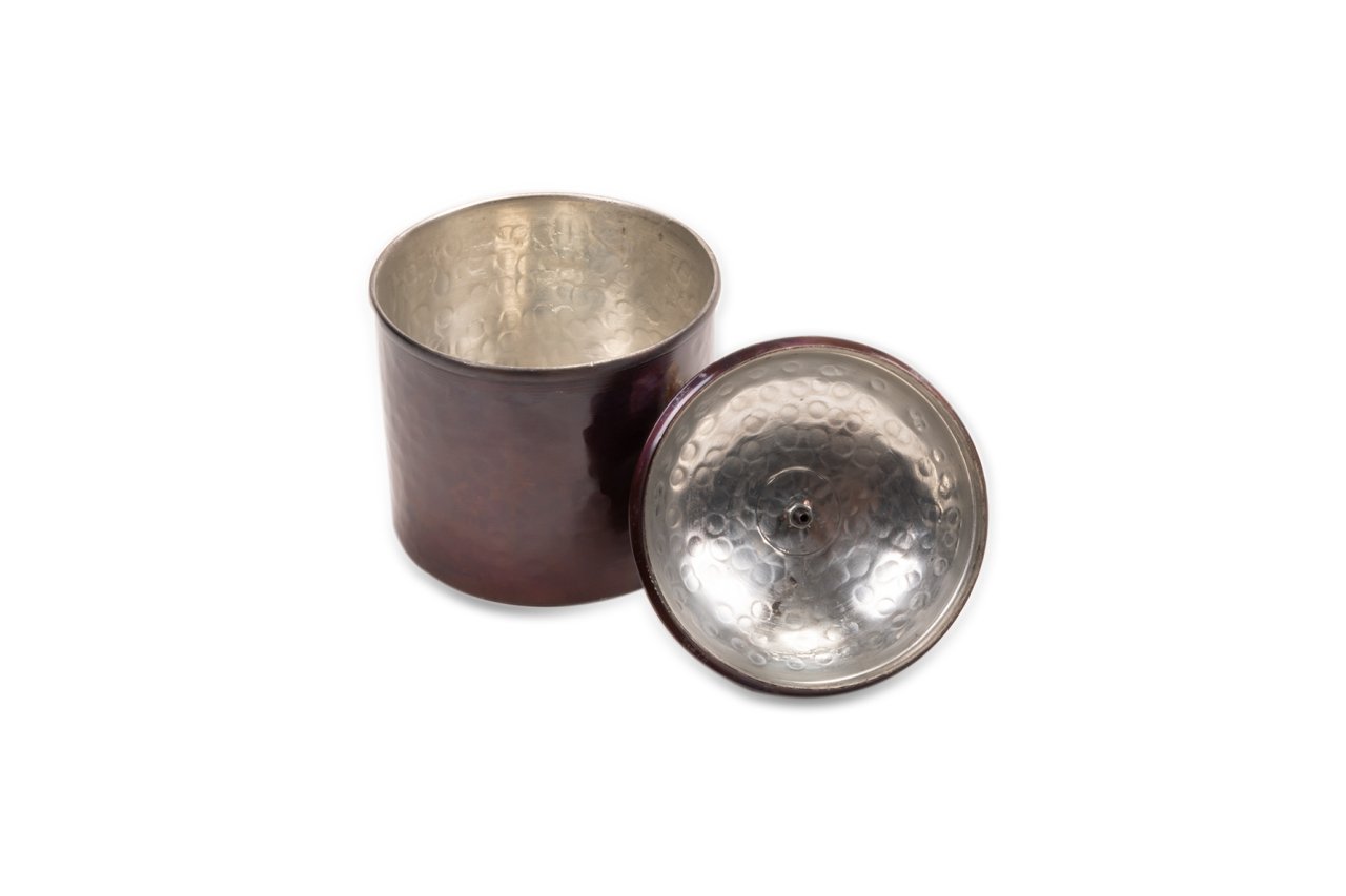 Handygoo Spice Box Bakır Baharatlık, baharat ve benzeri saklama ihtiyaçlarınıza tüm güzelliği ile yanıt veriyor. Dövme bakırdan üretilmiş olup, çekiç darbeleri ile şekillendirilmiştir. Ürün 10 cm çap ve 13 cm yüksekliğe sahiptir. Rengi özel olarak tasarlanmış olup içi kalay kaplıdır. Günlük kullanıma son derece uygundur.