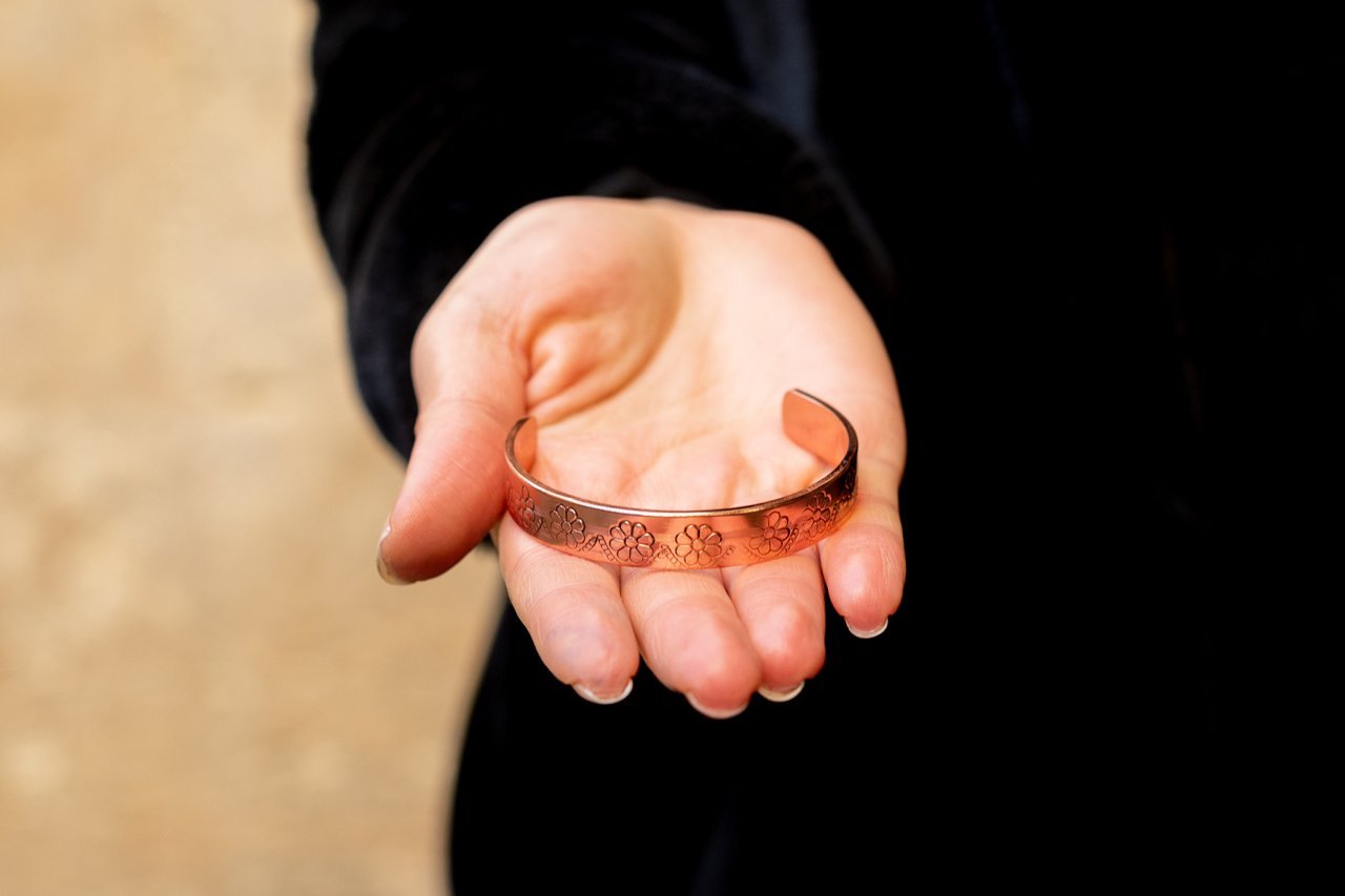 Bakır bilezik modelimiz, 1 cm en ve 0,2 cm kalınlığa sahiptir. %100 orjinal bakırdır ve kalın bakırdan üretilmiştir. Enerji akışının dengeli olmasını sağlamak için, iki ucu açık olarak tasarlanmıştır.