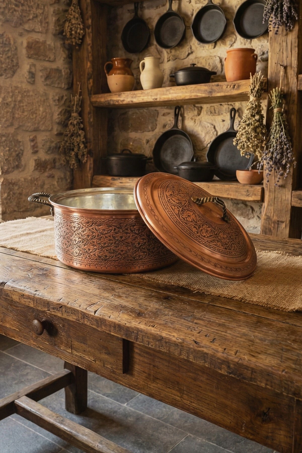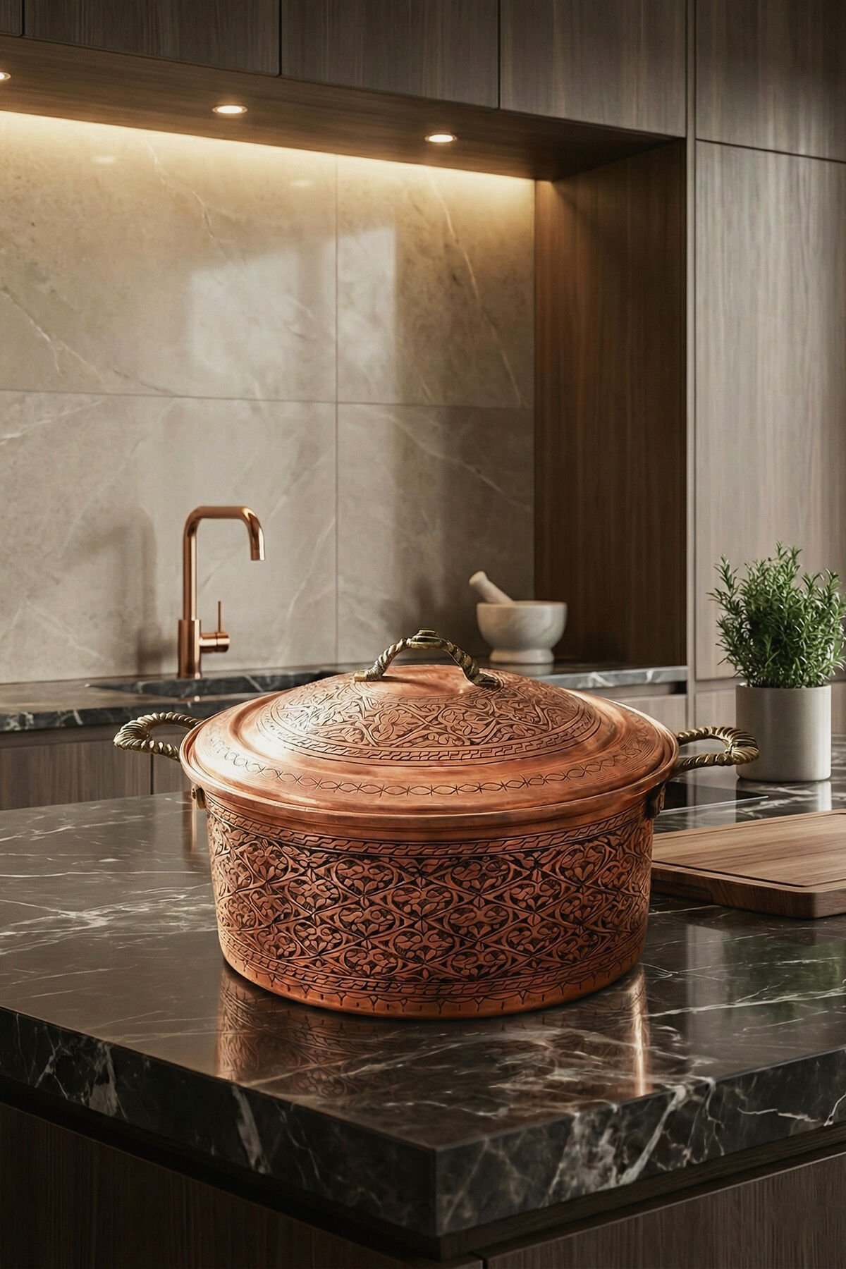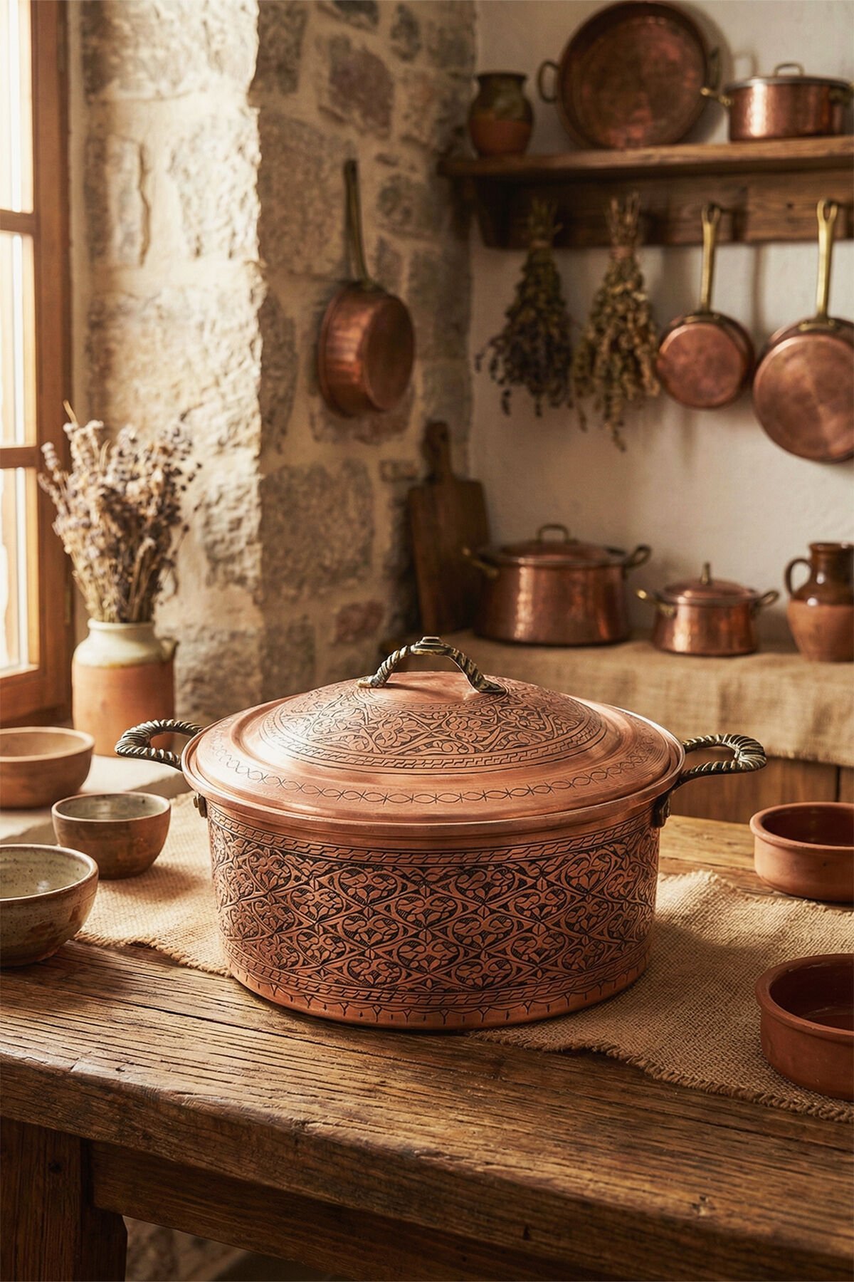 Geniş aile sofraları ve özel davetler için tasarlanan 8 Litre iç hacmi ve derin yapısı, kalabalık misafirlerinize hazırlayacağınız yemekler için idealdir. Bakırın üstün ısı iletkenliği sayesinde yemekleriniz kısık ateşte, lezzetini ve besin değerini kaybetmeden "demlenerek" pişer.