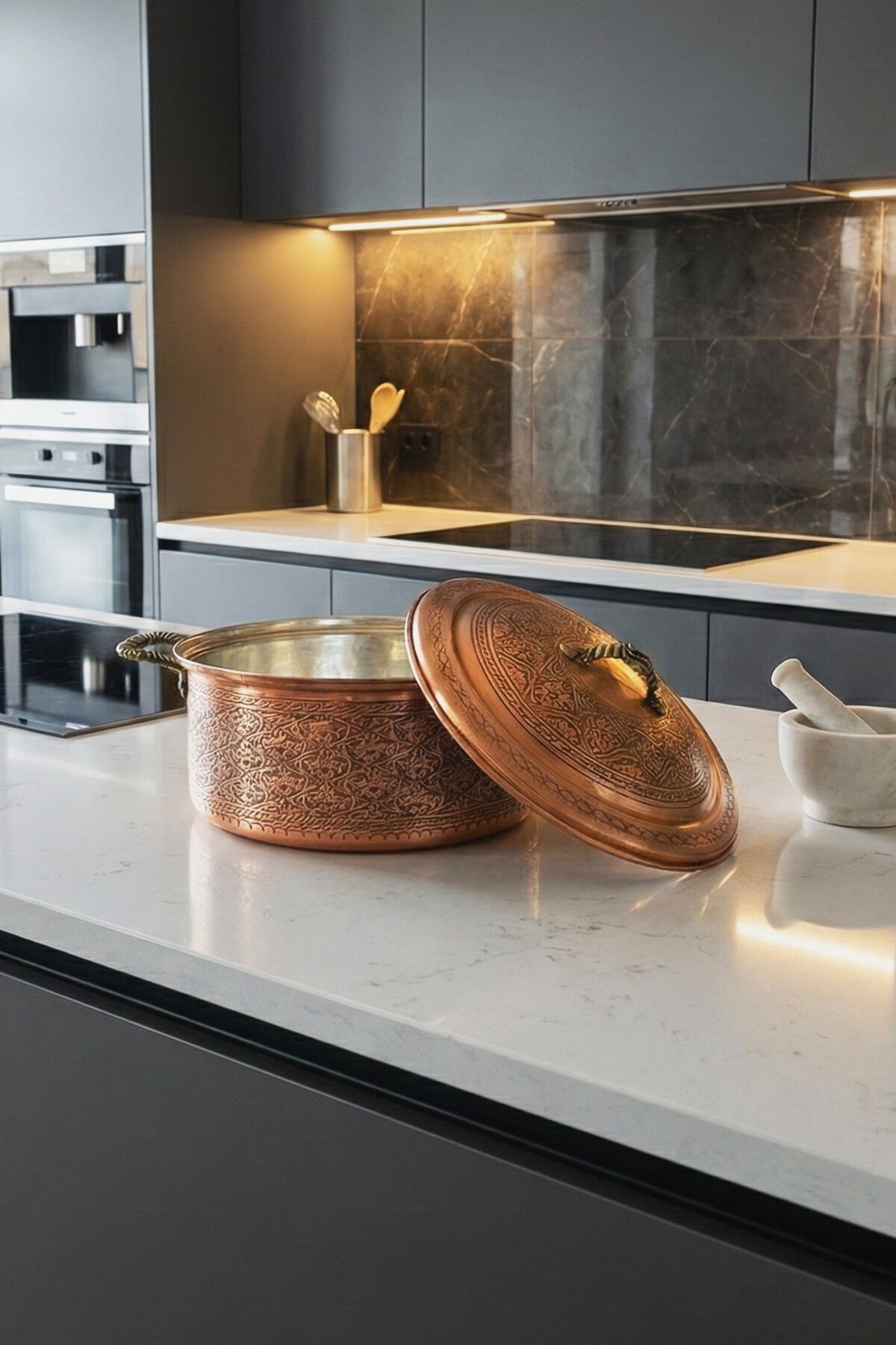 Sanatsal El İşçiliği: Fabrikasyon değil, tamamen el yapımıdır. Gövde ve kapak üzerindeki her bir motif, zanaatkarlar tarafından tek tek işlenmiştir