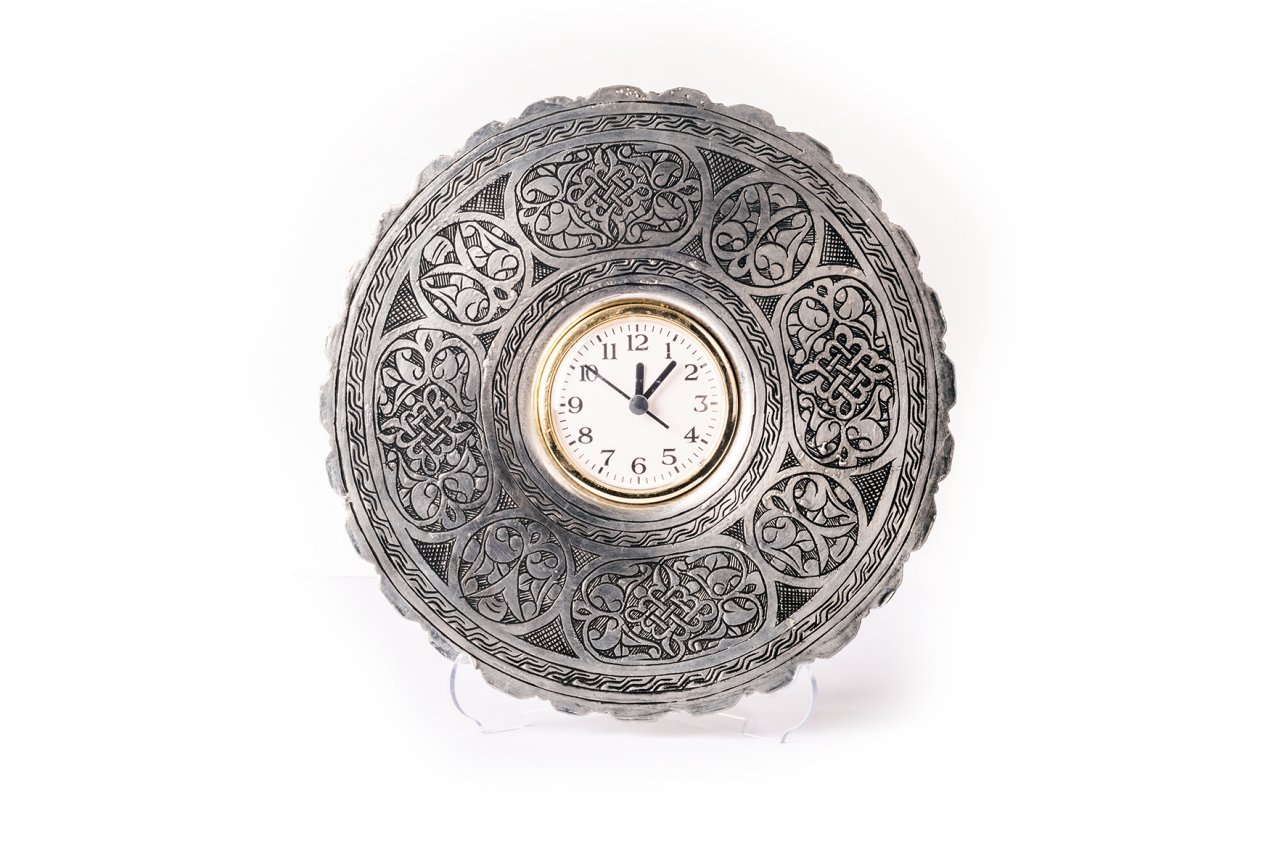 Handygoo Time Capture El İşlemesi Masa Üstü Bakır Saat, çok dekoratif ve şık. Kalın bakır kullanılarak kendi imalatımız olan masa üstü bakır saat modelimiz, ev ve iş yerlerinizde masanız üzerinde zamanı yakalamanın en güzel yollarından biri olacak. Üzerindeki el işlemeleri tamamen Gaziantep'li nakış ustaları tarafından hayat bulmuş ve el yapımı olan bakır saat modelimizin çapı 25 cm dir. Üzerine monte edilmiş olan tek bir standart kalem pil ile çalışmaktadır. Ürünümüz şeffaf kaidesi ile birlikte satılmaktadır. Ürünümüzün arka tarafında duvara asmak için aparatı da yer almaktadır. Dilerseniz duvara asmak içinde kullanabilirsiniz. Hem günlük kullanıma uygun hem de hediyelik olarak da düşünebileceğiniz bakır saat modelimiz bambaşka görüntüsü ile tüm görenlerin dikkatini üzerinde toplayacaktır.