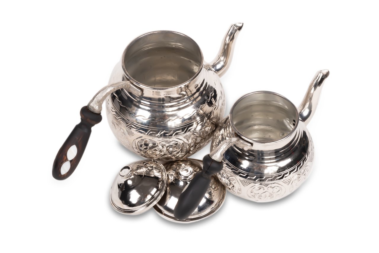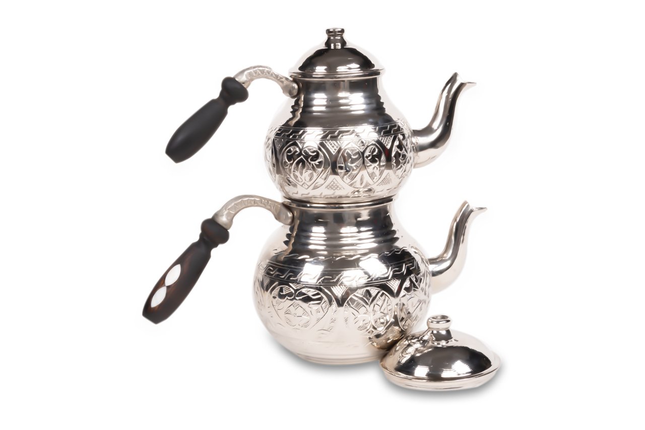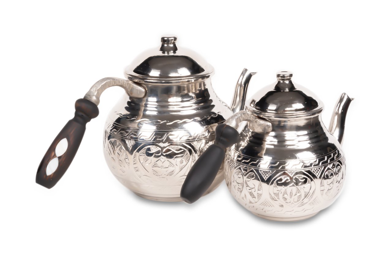 Handygoo Tombul El Yapımı Eskitme Bakır Çaydanlık, üzeri el işçiliği ile donatılmıştır. Tamamen el yapımı eskitme bakır çaydanlık, 1,8 lt lik alt demlik ve 0,8 lt lik üst demlik hacmi ile son derece ideal boyutlardadır. Kalın bakırdan üretilmiştir ve ağırlığı 1 kg (+50)(-50) dır. 4-6 kişi için son derece kullanışlıdır. Ürünün içi tamamen kalaylanmış olup ürünün kulpları ise ahşap malzemedir. Ürün, bu ahşap kulplar üzerindeki sedef işçiliği ile bir kat daha güzelleşmekte iken, hem dekoratif, hem ergonomik hem de şık görüntüsü ile kullanmaktan zevk alacağınız aynı zamanda sevdiklerinize de mutlaka hediye etmek isteyeceğiniz bir üründür. Sitemizde eskitme, nikelajlı ve kırmızı bakır modeli olmak üzere 3 farklı seçeneği olan bakır çaydanlık ürününe ücretsiz kargo fırsatı ile sahip olabilirsiniz.