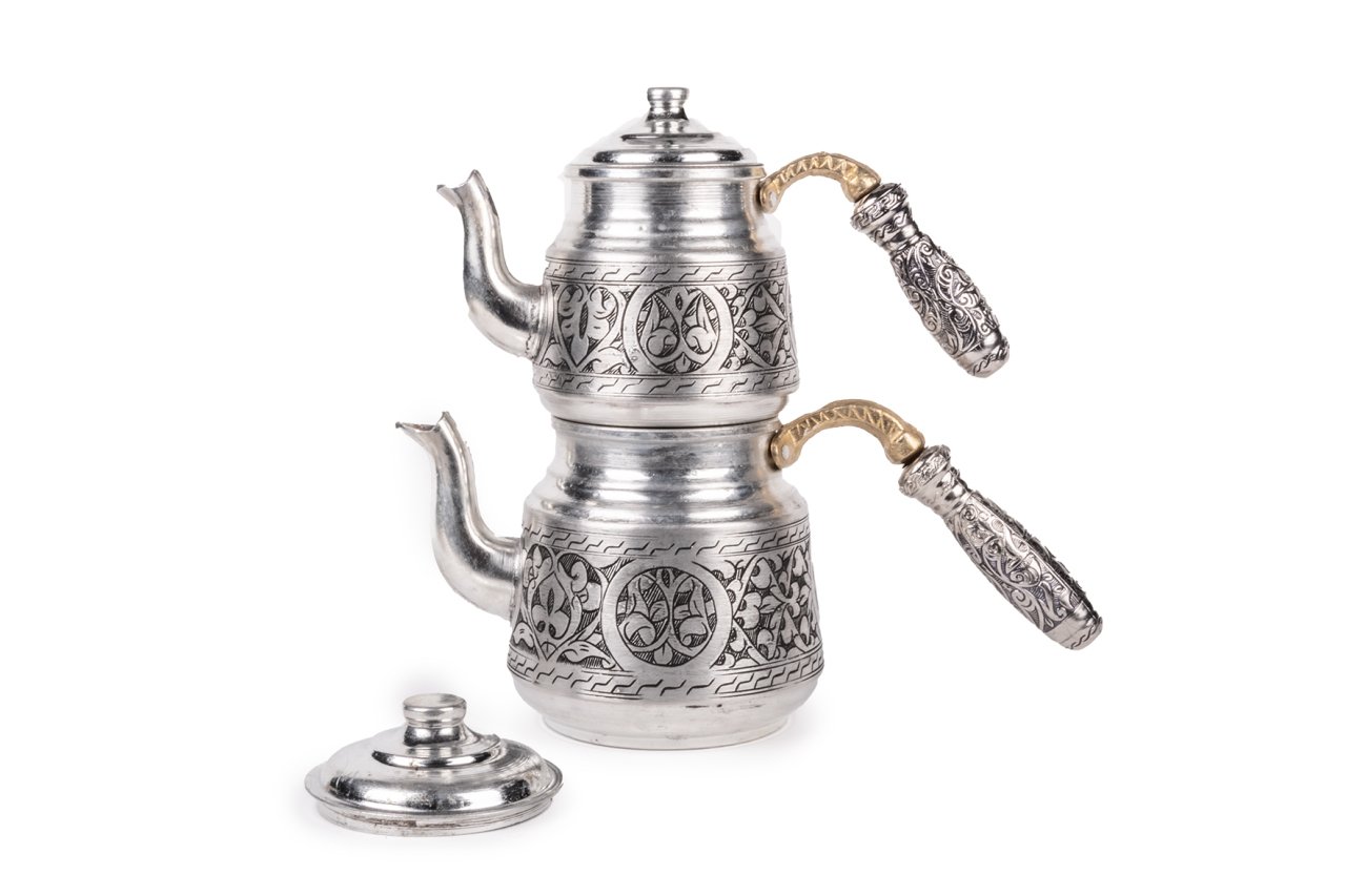 Handygoo Ufak El İşlemesi Kalaylı Bakır Çaydanlık, 1 lt lik alt demlik ve 0,5 lt lik üst demlik hacmi ile ufak ancak bir o kadar kullanışlı bakır çaydanlık modelimizdir. Kalın bakırdan üretilmiştir. 2-6 kişi için son derece kullanışlıdır. Çay bardağı ile 10 bardak çay hacmi ile her zaman kullanmak isteyeceğiniz bakır çaydanlık modelimiz üzerinde bakır işleme sanatının en güzel örneklerini taşımaktadır. İçi kalaylı olan ürünümüz kendi imalatımızdır. Ürünümüze uygun balkon sefası yada çaydanlık ısıtıcı modellerimizi ayrı olarak da satın almayı tercih edebilirsiniz. Günlük kullanıma uygun olan ürünümüzü ve diğer tüm bakır ürünlerimizi ücretsiz kargo fırsatı ile güvenle satın alabilirsiniz. Hediye olarak da sipariş verebileceğiniz ürünümüz için, satın alma ekranında hediye paketi ve hediye notu seçeneklerimizi de kullanabilirsiniz. Tüm kredi kartları ile taksit imkanlarından da yararlanabilirsiniz.
