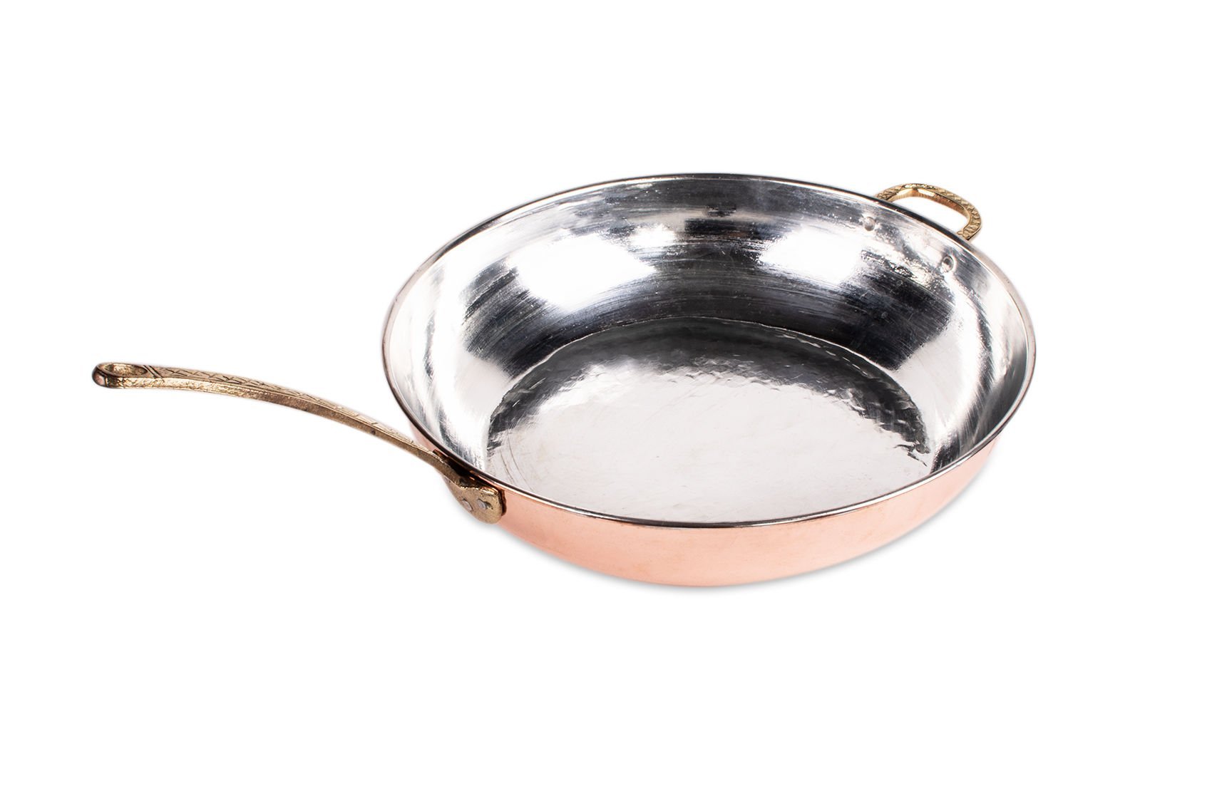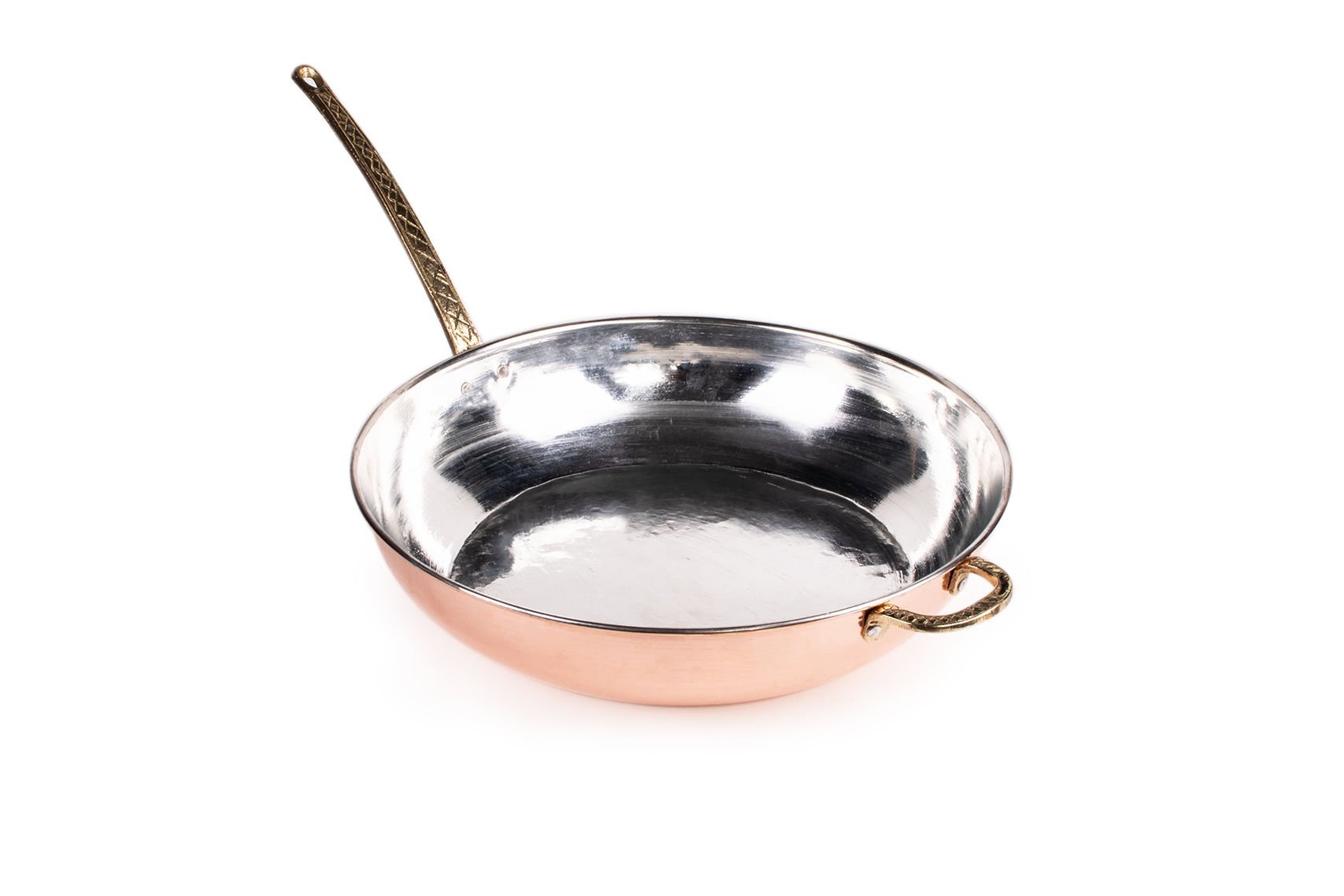Handygoo Uzun Saplı Bakır Tava, mutfaklarınızda tam da elinizin altında olmasını isteyeceğiniz bakır tava modelimizdir. Sahip olduğu uzun sapı ve kısa sapı ile son derece kullanışlı olan ürünümüz, 36 cm çap, 22 cm sap uzunluğu ve 9 cm derinlik ölçüsüne sahiptir. 1,5 kg ağırlığında olan modelimizin iç kısmı kalaylı olup, dış kısmı elde çekiç dövme tekniği ile üretilmiştir. Ürünümüz kendi imalatımızdır. 1 mm kalınlığa sahip olan modelimizi her türlü pişirim, servis ve sunumlarınızda kullanabilirsiniz.