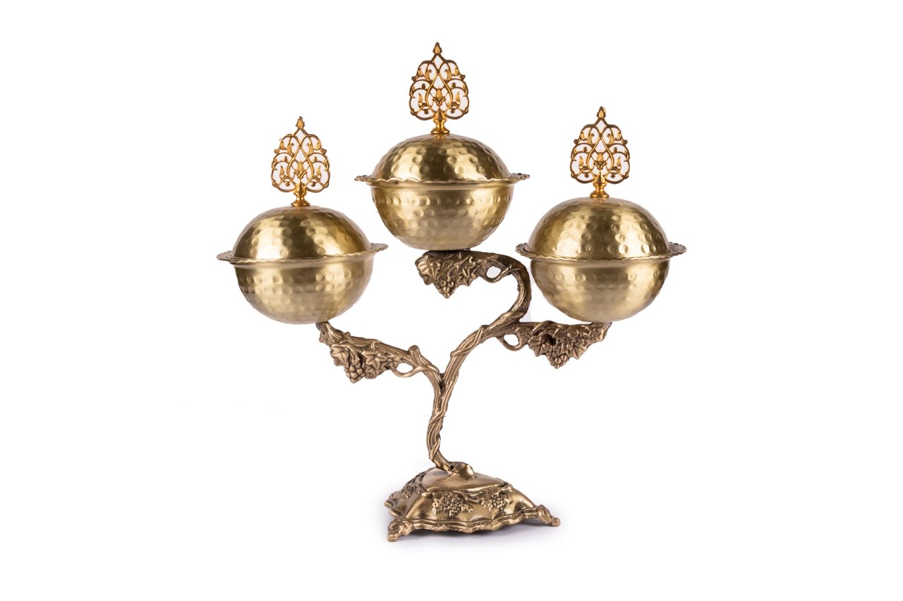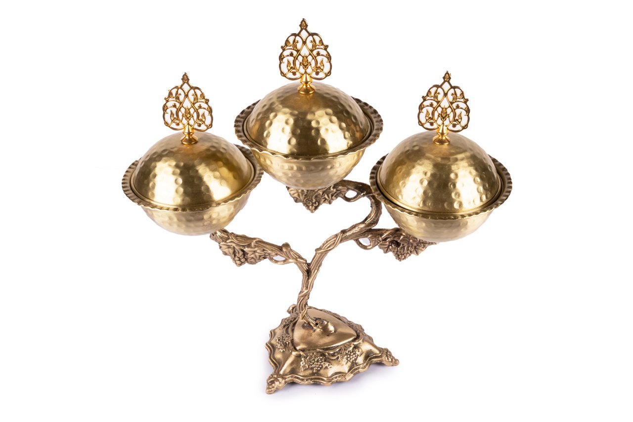 Handygoo Yellow High Dövme Bakır Çerezlik, sunumlarınız için tasarladığımız bakır çerezlik setimizdir. Yepyeni bir tarza sahip olmak isteyenler için tasarladığımız ürünümüz, aynı zamanda şekerlik vb. sunumlarınız içinde kullanılabilir. Ürünümüz kalın bakırdan üretilmiştir ve kendi imalatımızdır. Kararma yapmamaktadır. Bakır çerezlik ürünümüzün her bir çerezlik çapı 11,5 cm, yüksekliği ise 5,5 cm dir. Ürünümüzün toplam yüksekliği 33 cm dir. Sunumlarınız için ideal boyutlarda ürettiğimiz ürünümüzde, çerezlik başlıkları döküm malzemeden üretilmiştir. Ürünümüz, Gaziantep'li bakır ustalarımız tarafından elde dövülmüş olup tamamen el yapımıdır. Sitemizde yer alan diğer tüm bakır ürünlerimiz ile kombin edilebilir. Evinize ve iş yerlerinize bambaşka bir hava getirecek olan ürünümüzü aynı zamanda sevdiklerinize hediye de edebilirsiniz. Tüm kredi karları ile güvenle alışveriş yapabileceğiniz sitemizde tüm ürün kategorilerini incelemenizi tavsiye ederiz.