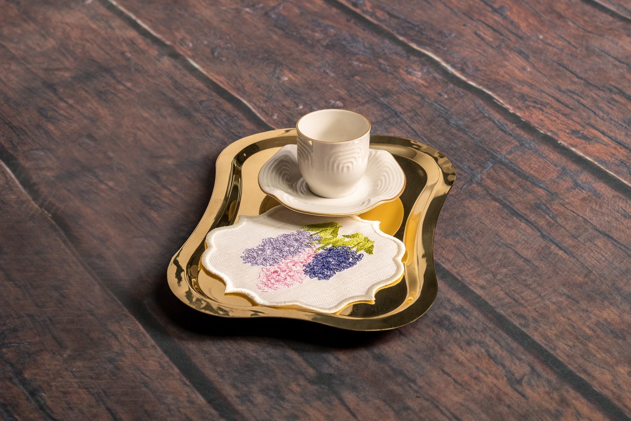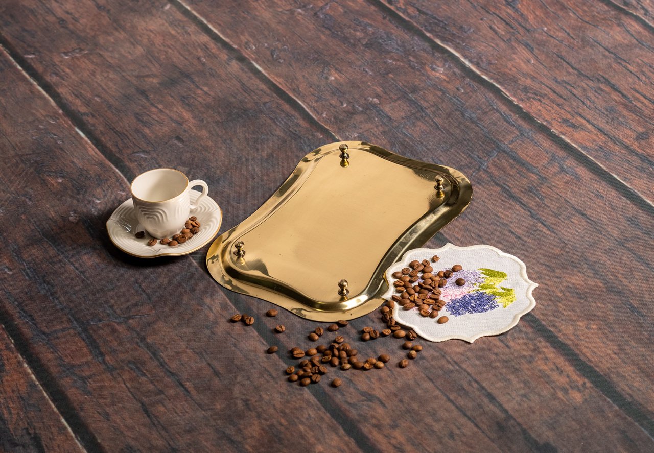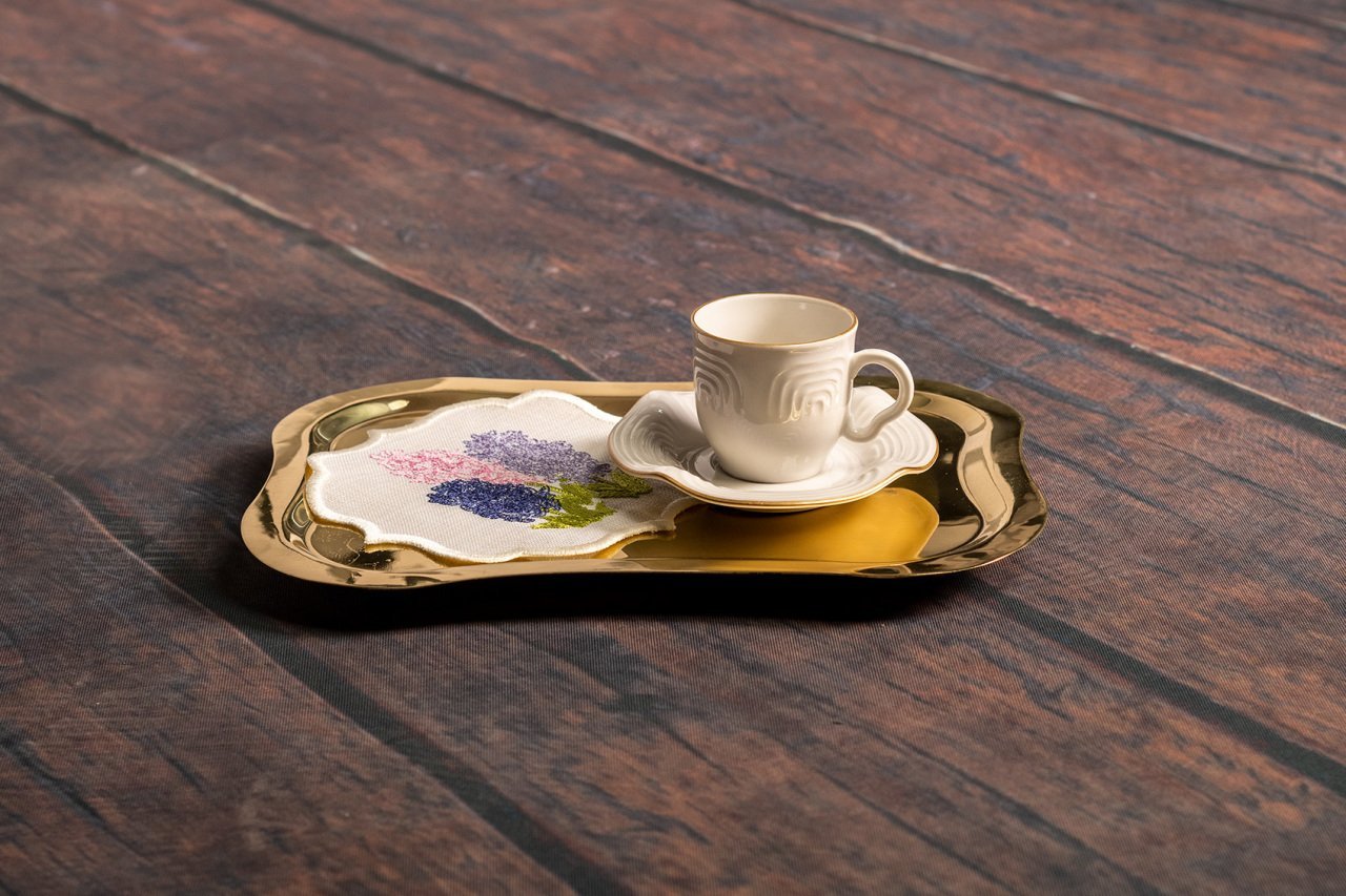 Görsellerde yer alan sunum peçetesi, kahve fincanı ve tepsi ayaklığı ürün ile birlikte satılmamaktadır.