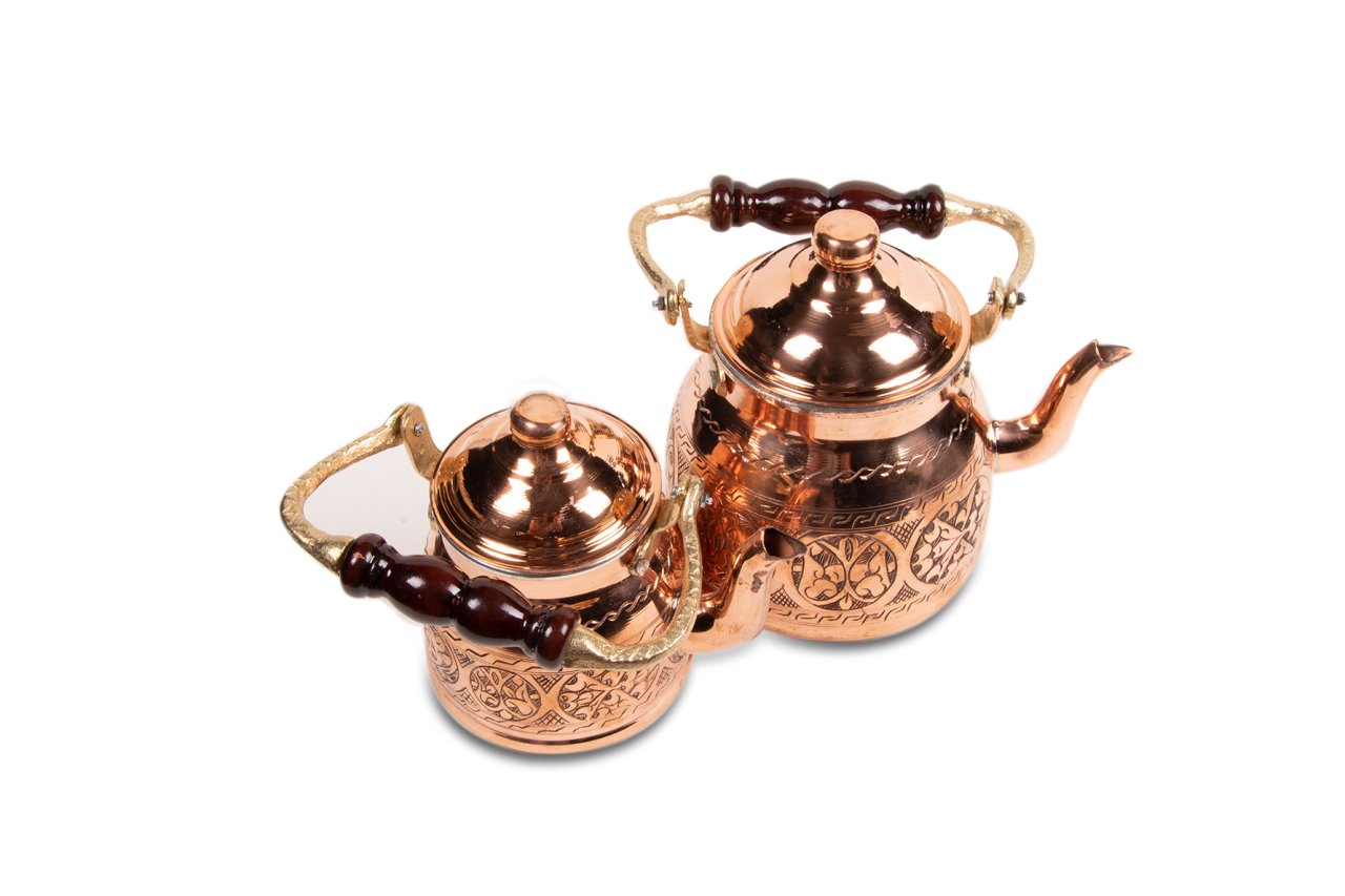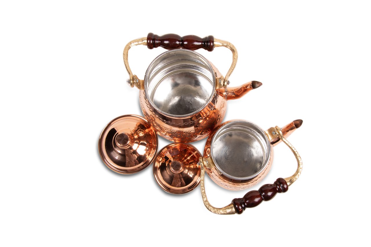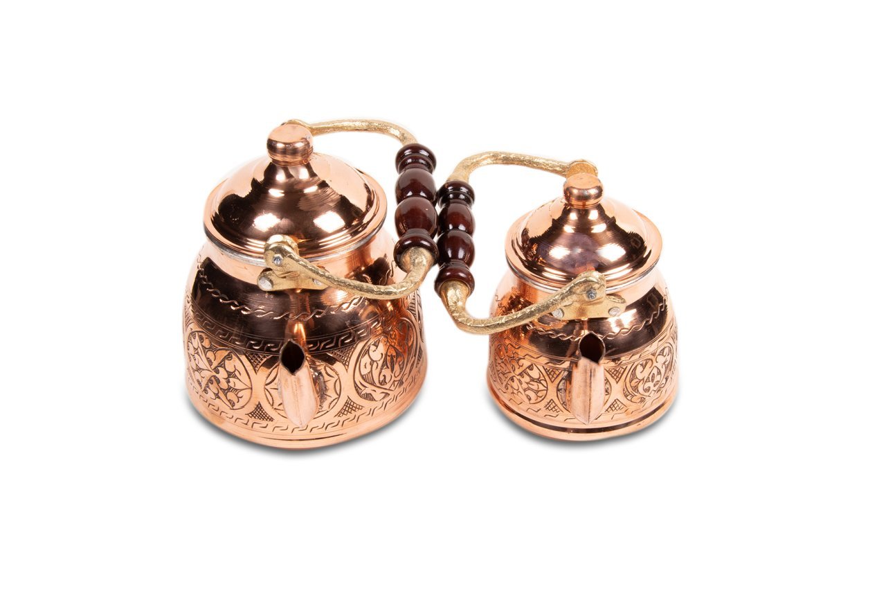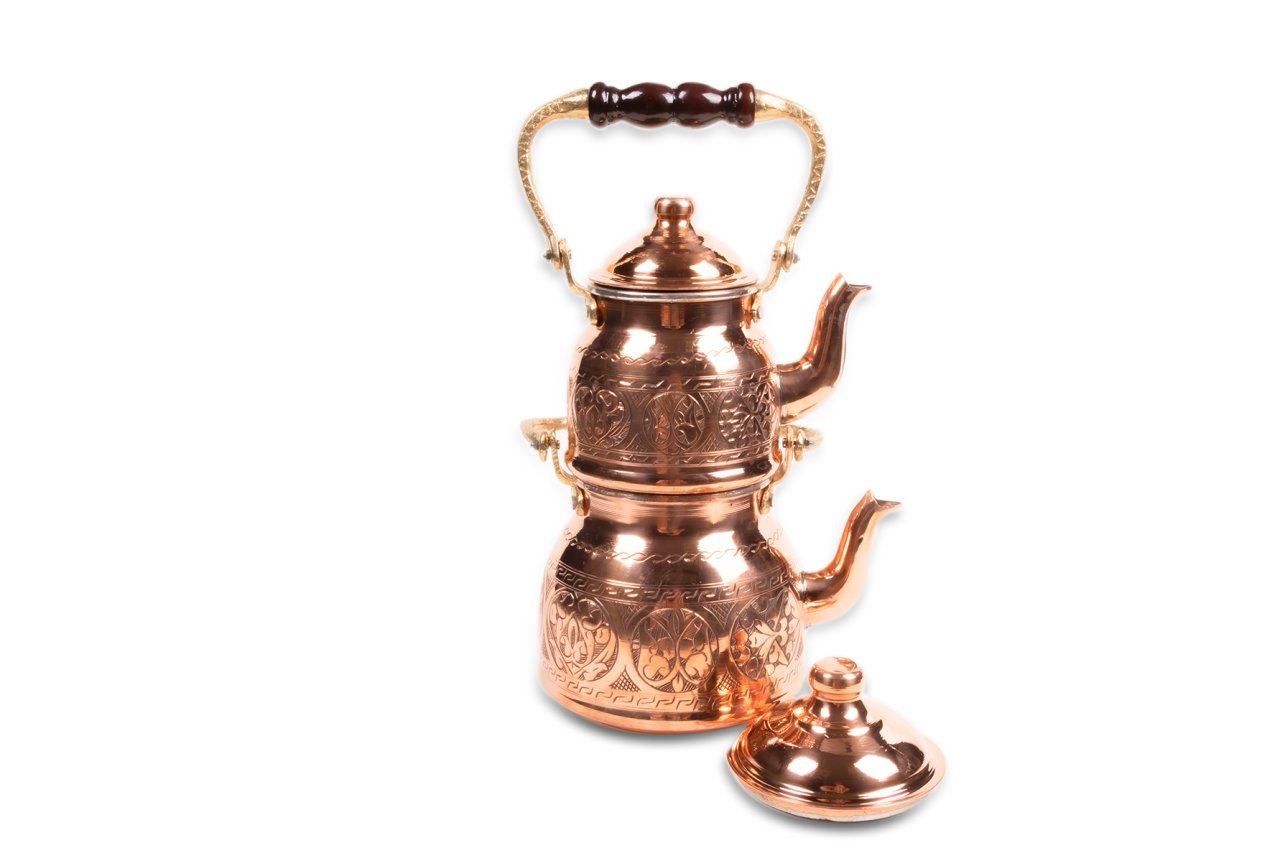 Handygoo Yukarıdan Kulplu Bakır Çaydanlık, el işlemesi bakır sanatının tüm güzelliğini üzerinde taşımaktadır. 1,8 lt lik alt demlik ve 0,8 lt üst demlik hacmi ile son derece kullanışlıdır. Ürünün içi tamamen kalaylanmış olup ürünün kulpları ise ahşap malzemedir. Kulplarının konumlandırma tasarımından dolayı hem dekoratif, hem ergonomik hem de şık görüntüsü ile kullanmaktan zevk alacağınız aynı zamanda sevdiklerinize de mutlaka hediye etmek isteyeceğiniz bir üründür. Kırmızı ve Nikelajlı olmak üzere iki farklı seçeneğine ulaşabileceğiniz bakır çaydanlık ürününe ücretsiz kargo fırsatı ile sahip olabilirsiniz.