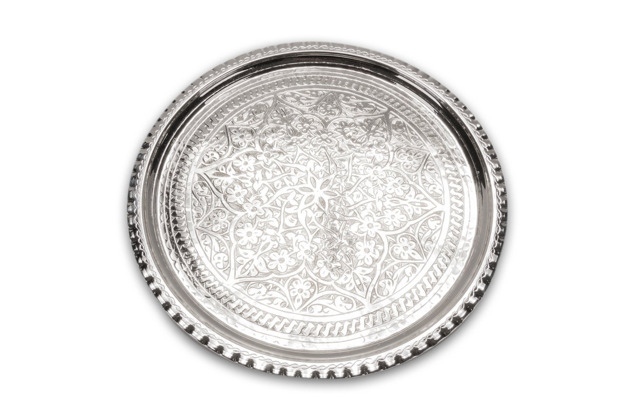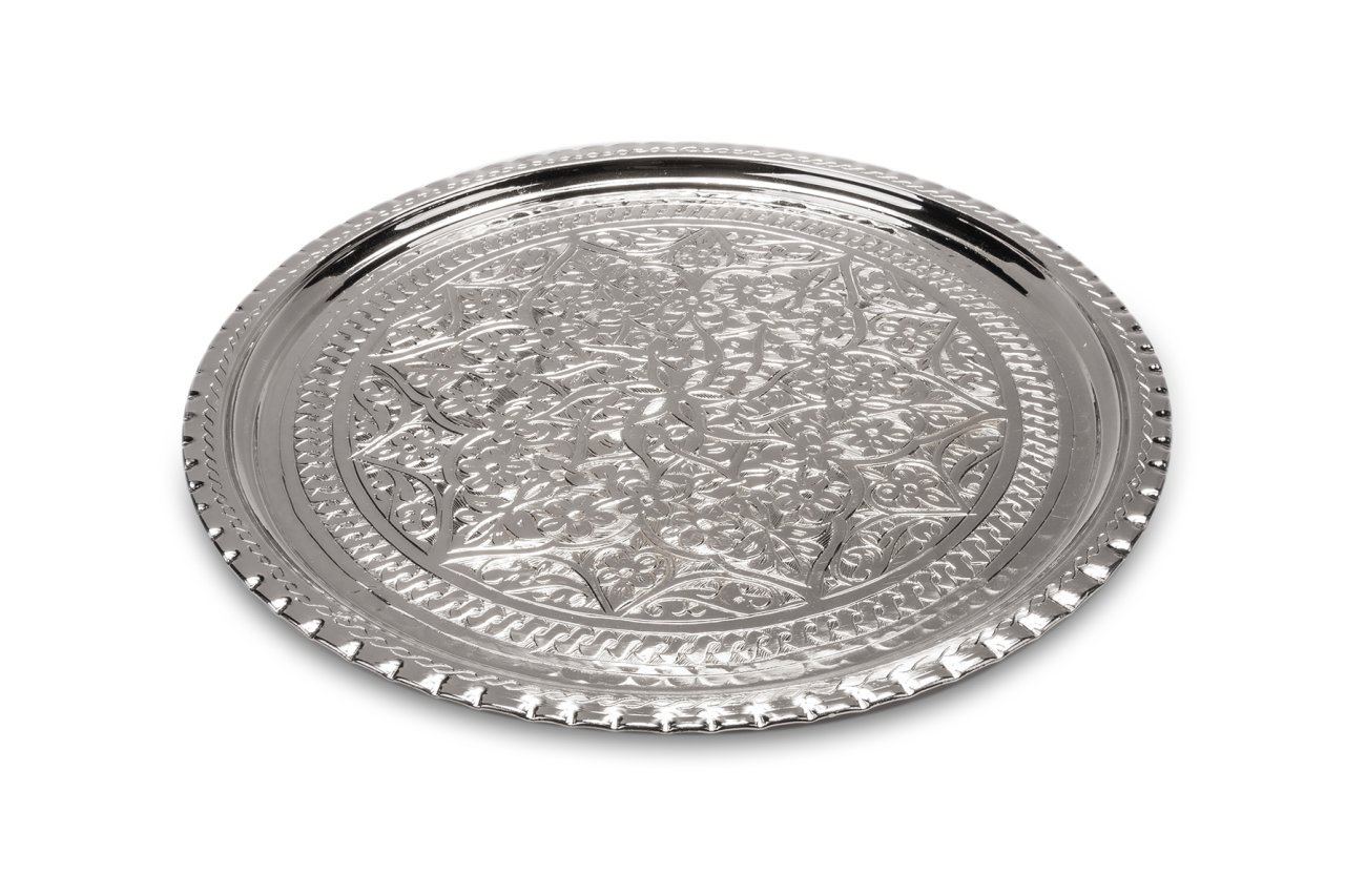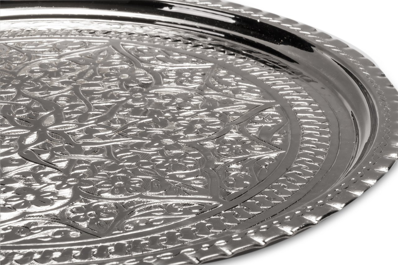 Nikelajlı El İşlemesi Bakır Tepsi, konuklarınıza yapacağınız ikramlar için yada bir partide kokteyl ve ordöv sunmak için ideal olup, çok yönlüdür. Merkezinden, dış kenarlarına doğru tamamen el yapımı son derece detaylı işlemeler içermektedir. Klasik tarzın önemli örneklerinden olan bu bakır tepsi, ikramlarınız da yada dekoratif olarak kullanmanız durumunda bulunduğu her mekana sıcaklık ve stil katacaktır. Zarif tepsimiz ile bakırın sıcaklığını evinize getirin. Son derece yetenekli bakırcılar öncelikle ham bakıra şeklini verirler, daha sonra bakır dış cepheyi çekiçlerler. Üzerindeki her bir karmaşık desen tasarımı, sabır ve hassasiyetle meydana gelen el işçiliğidir. Geleneksel Türk esintisine sahip tepsi, benzersiz bir sanat eserine dönüşmüştür. El ile dövülmüş bu tasarım sayesinde, ışık yüzeyden yansıyarak bakırın ateşli güzelliğini yansıtır. Süslemeli, ince oyulmuş mobilyalar ile güçlü geometrik şekillere tüm zarifliği ile eşlik etmektedir. El sanatları için materyallerde gerçeği arıyorsanız, bakır tepsi üzerindeki etnik düzeni tam olarak tercih sebebiniz olacaktır. Masa veya duvar dekorundan yada servis tepsisine kadar bir çok farklı amaca hizmet edebilecek uzun ömürlü ve dayanıklı ürün, eviniz, ofisiniz yada vakit geçirdiğiniz tüm mekanlarınız için vazgeçilmez olacaktır. Çapı 38 cm olup, 35 cm lik seçeneği de mevcuttur. Sitemiz üzerinden 35 cm lik seçeneği de tercih edebilir yada her iki boyu kombinleyebilirsiniz.