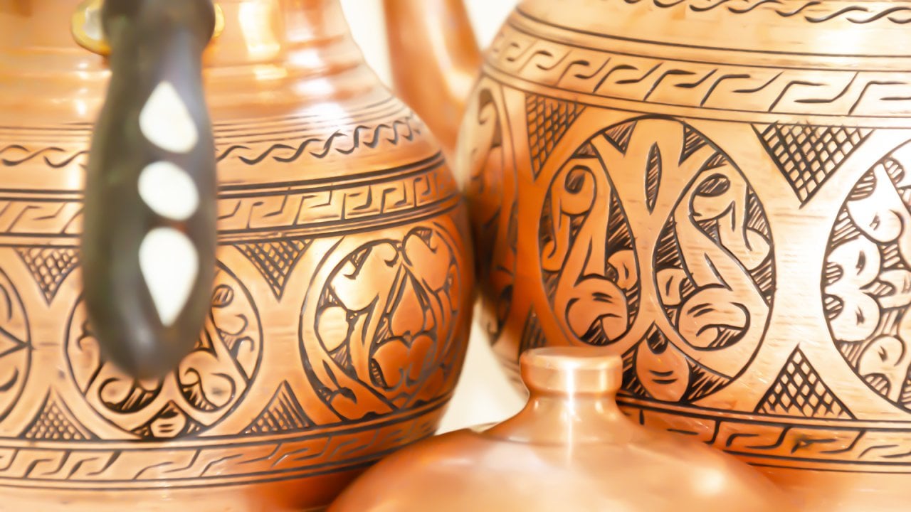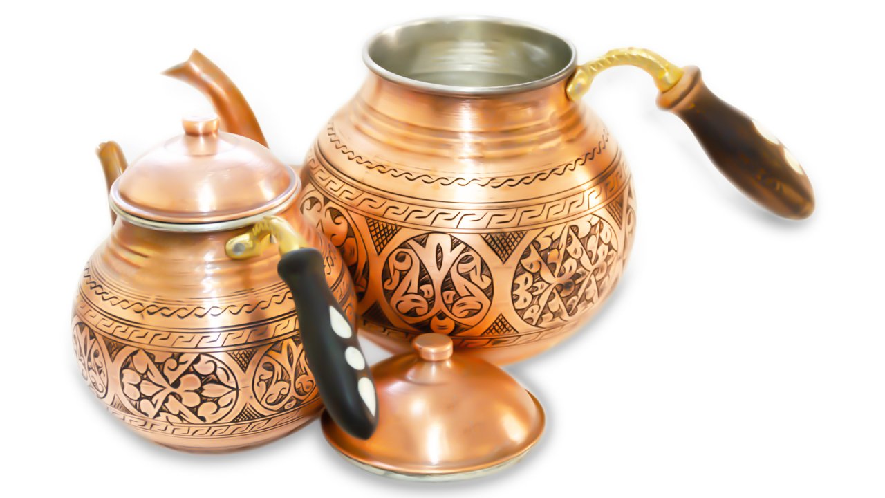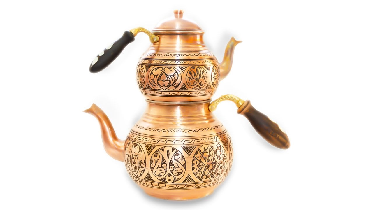 Tea stream bakır çaydanlık, çay saatlerinizi büyüleyici dakikalar ile süsleyecek, çay demleme hakkındaki tüm alışkanlıklarınızı değiştirecek. Her bir satırı el işlemesi ile özenle, itina ile nakışlanmış ve ortaya sanat eseri bakır çaydanlık çıkmıştır. Göz alıcı rengi, göz kamaştırıcı parlaklığı ile girdiği her ortamda kendinden söz ettiren el işlemesi bakır çaydanlık, 2,8 lt lik su haznesi ile de oldukça büyük ve ihtiyacınıza yanıt verecek şekilde tasarlandı. Üst demliği 1,8 lt su almaktadır. Kulplarındaki sedef işçiliği, ürün üzerindeki el işçiliği nakışlar kadar güçlü ve olağanüstü detay sanatçılığı işaret ediyor. Her biri 2 cm lik sedefler kulplara özenle yerleştirilmiş ve muhteşem detaylara ulaşılmıştır. Ürün sadece bir bakır çaydanlık değil, evinizin baş köşesinde yer alacak dekoratif bir aksesuar aynı zamanda. Rahatlıkla sergileyebileceğiniz renk ve detaylara sahip ürün, kapaklarından kulplarına, işlemelerinden sedeflerine sizi çağırıyor. Sitemizde diğer ürünlere de bakabilir ve yeni ürününüzü dilediğiniz sanat eseri ile kombinleyebilirsiniz. Özellikle şekerlikleri, servis tepsilerini ve kahve fincanı gibi ürünleri tercih edebilirsiniz. Tamamı sitemizde sizleri bekliyor.